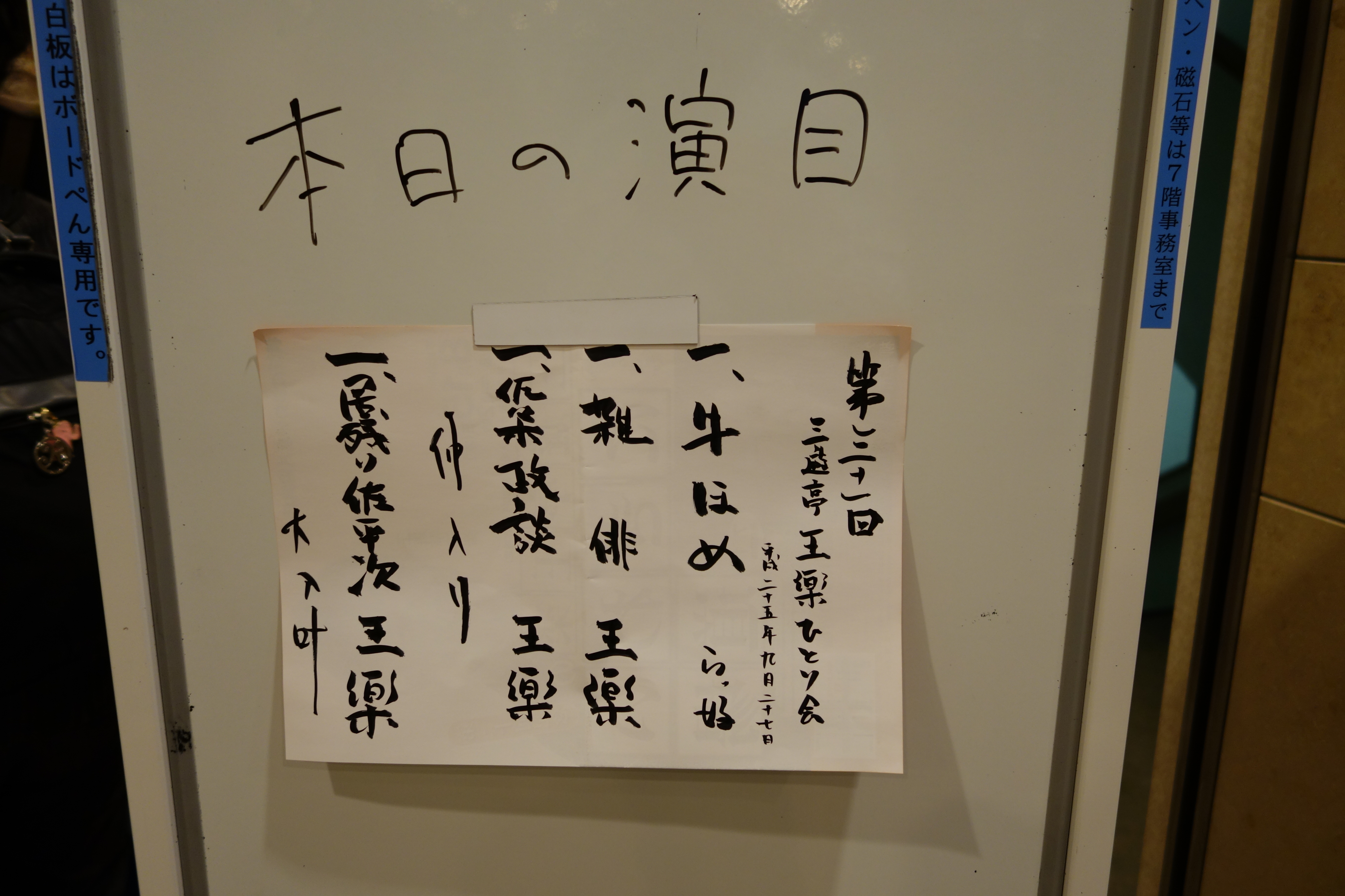 居残り佐平次 今日はいつもの独演会。ここでやるのは今年は最後。 たっぷり、居残り佐平次のネタおろし。オチが気になるこの噺ですが(結構昔の言葉でオチになっていて現代の人にはわかりづらい)マクラで説明した裏の噺をうまく使って落とすのね。