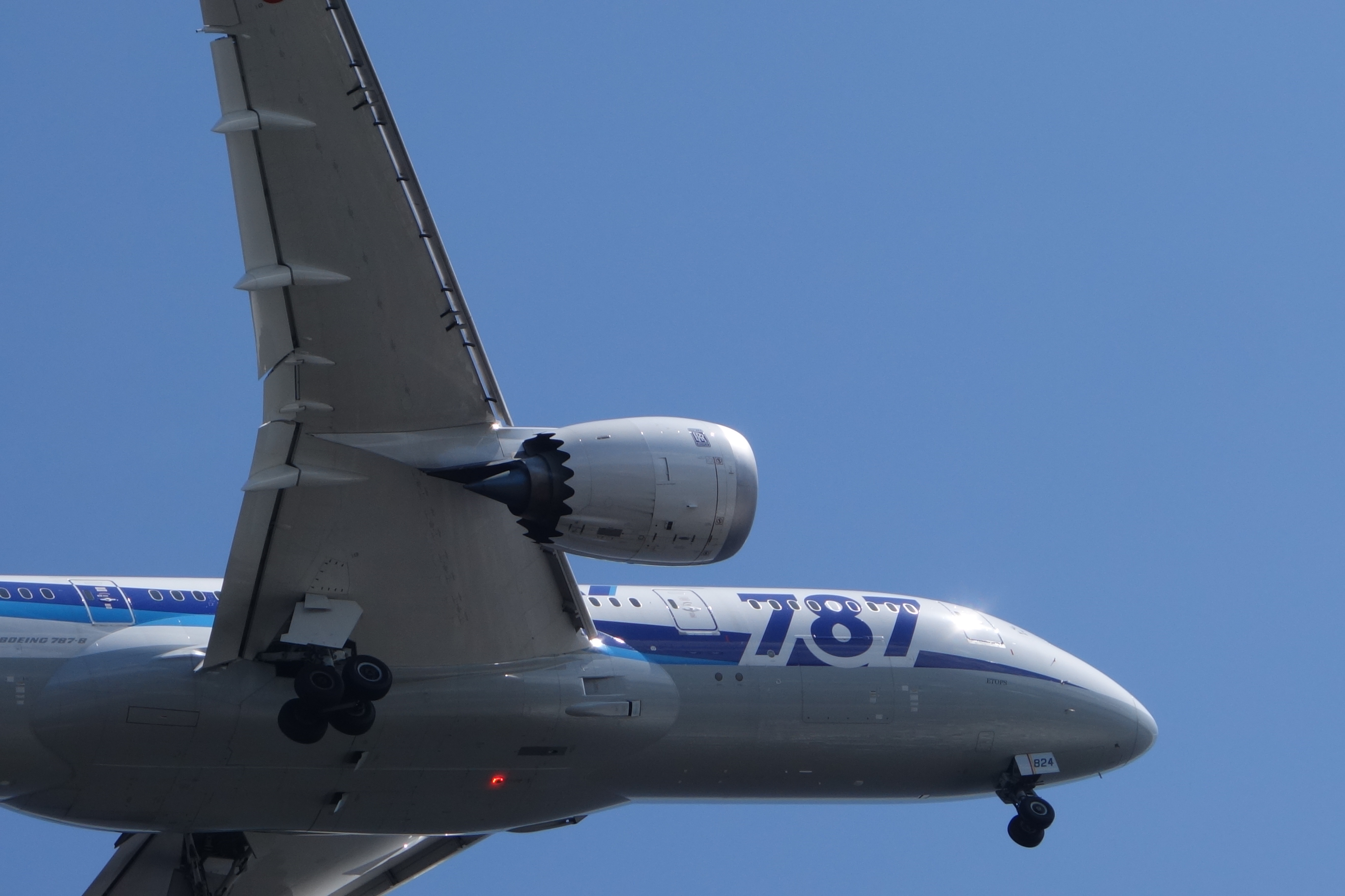 連休中の一コマ。天気がいいのでいつもの海浜公園で飛行機撮影、目的の787しっかり撮影できました。静音性が高くてびっくり。