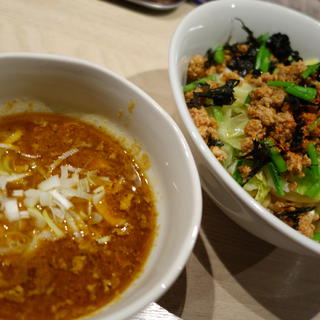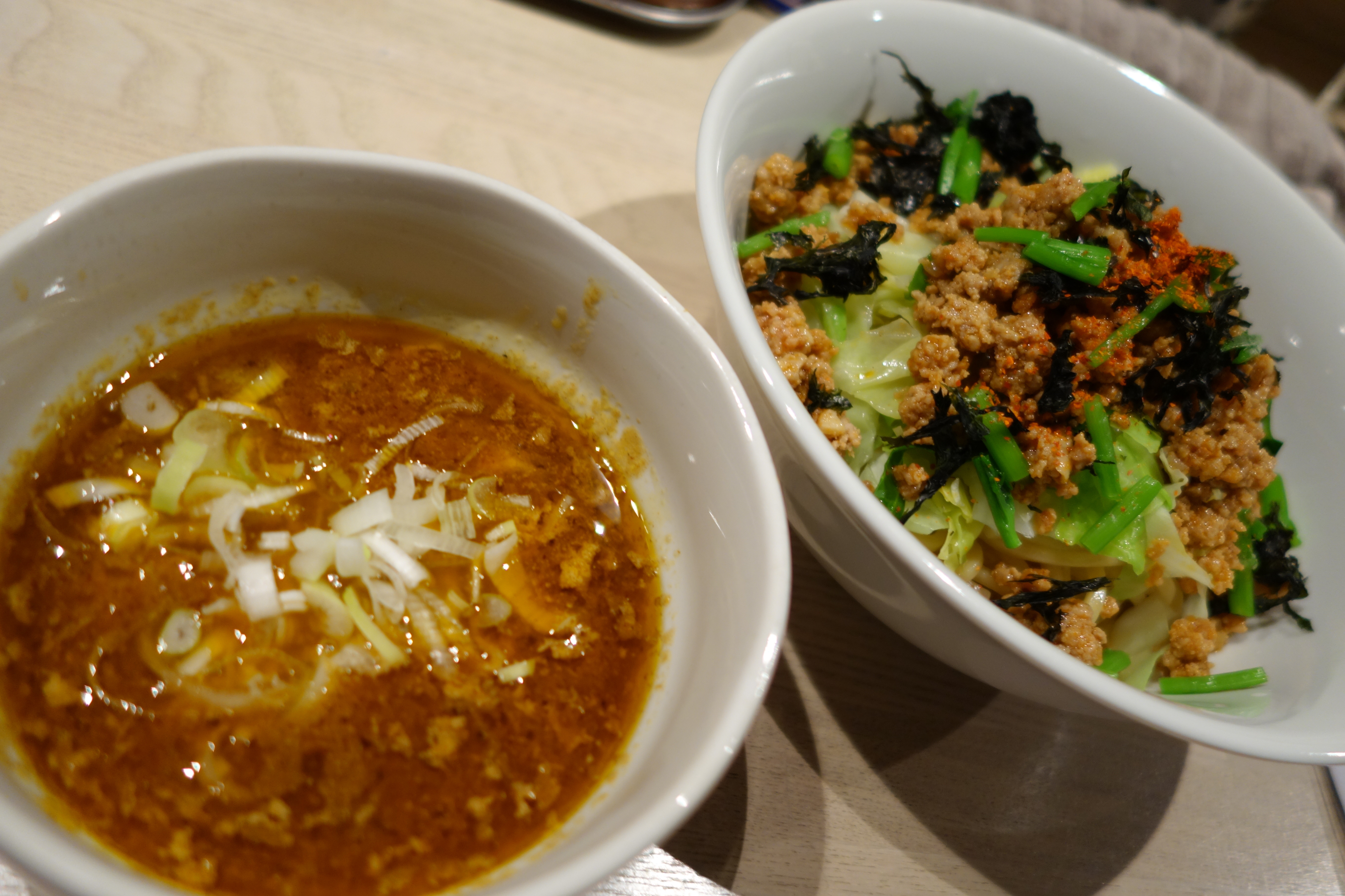 いつものお店、メニューはピリ辛・キャベツと挽き肉のつけ麺。キャベツと挽き肉って、あまりつけ麺では無いコンビですが、ところがどっこい、ここではそれがばっちり合っちゃうんですよ。