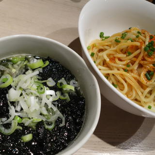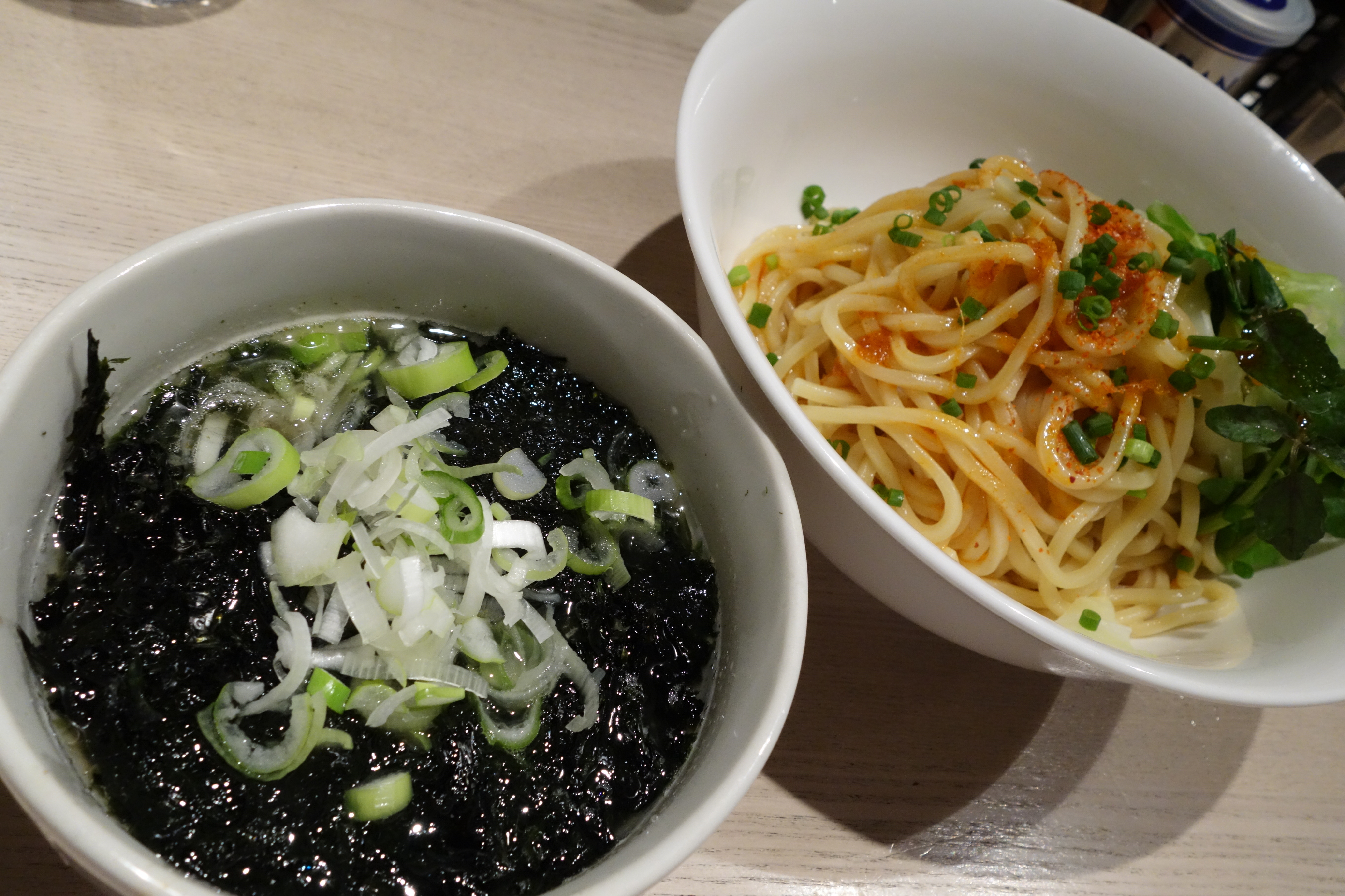 イレギュラーのメニューの名前は「のりつけ中華」のりたっぷり、でちょっと辛いつけ麺。〆にごはんを入れて食べるとそれもたまらんのです。