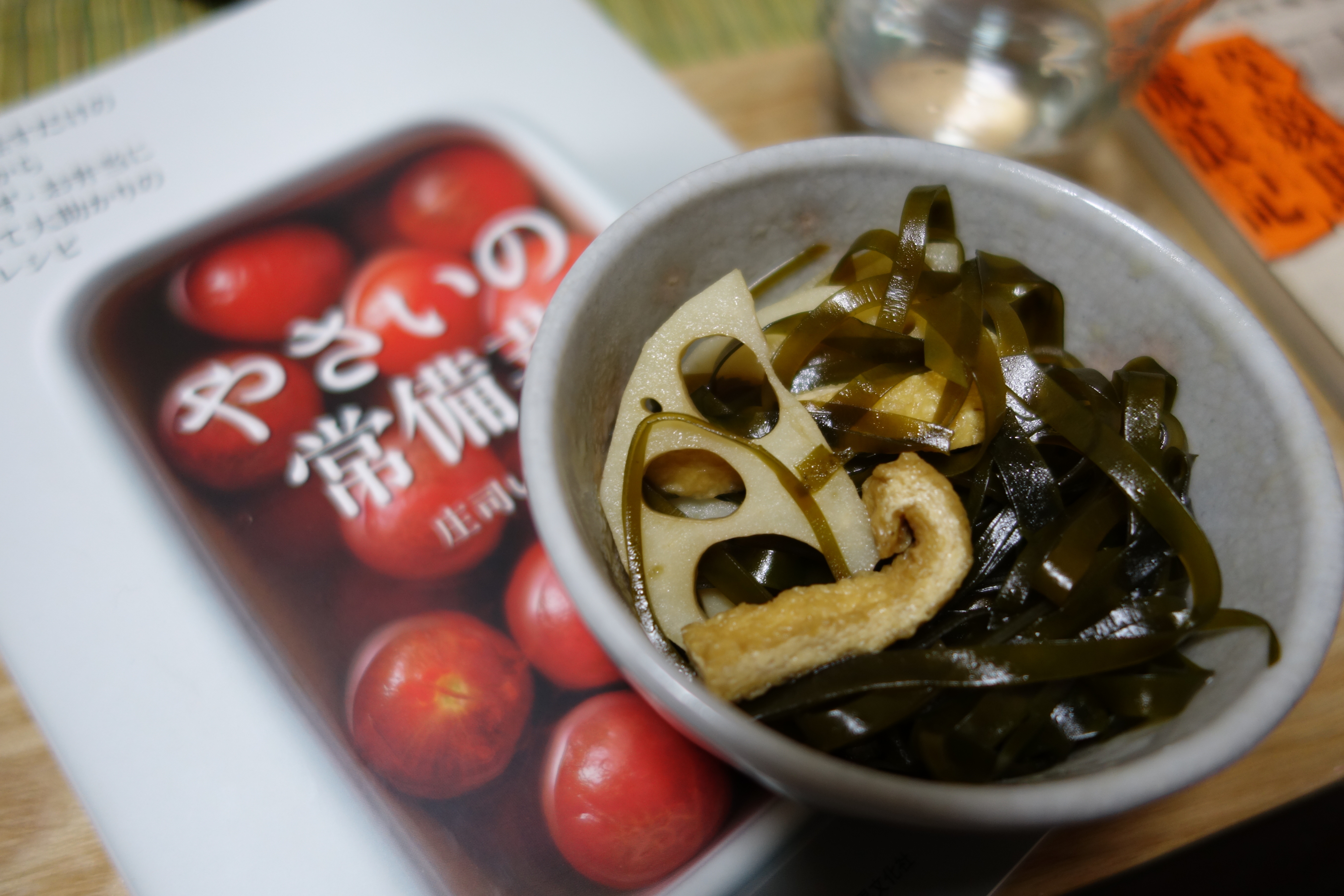 盛岡土産のすき昆布、れんこんと油揚げと煮てみました。常備菜の本とか買っちゃうとついつい色々やってみたくなるんですよね。まあうちの場合は常備菜というより晩酌用おつまみですが。