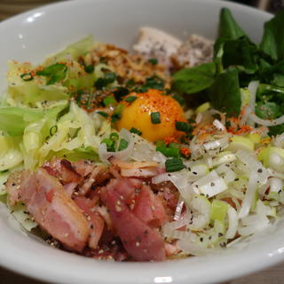 冬場にカルボナーら。背脂を使って乳製品を使わないまぜそば。いい塩味とコショウの組み合わせが美味いんですよね。