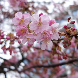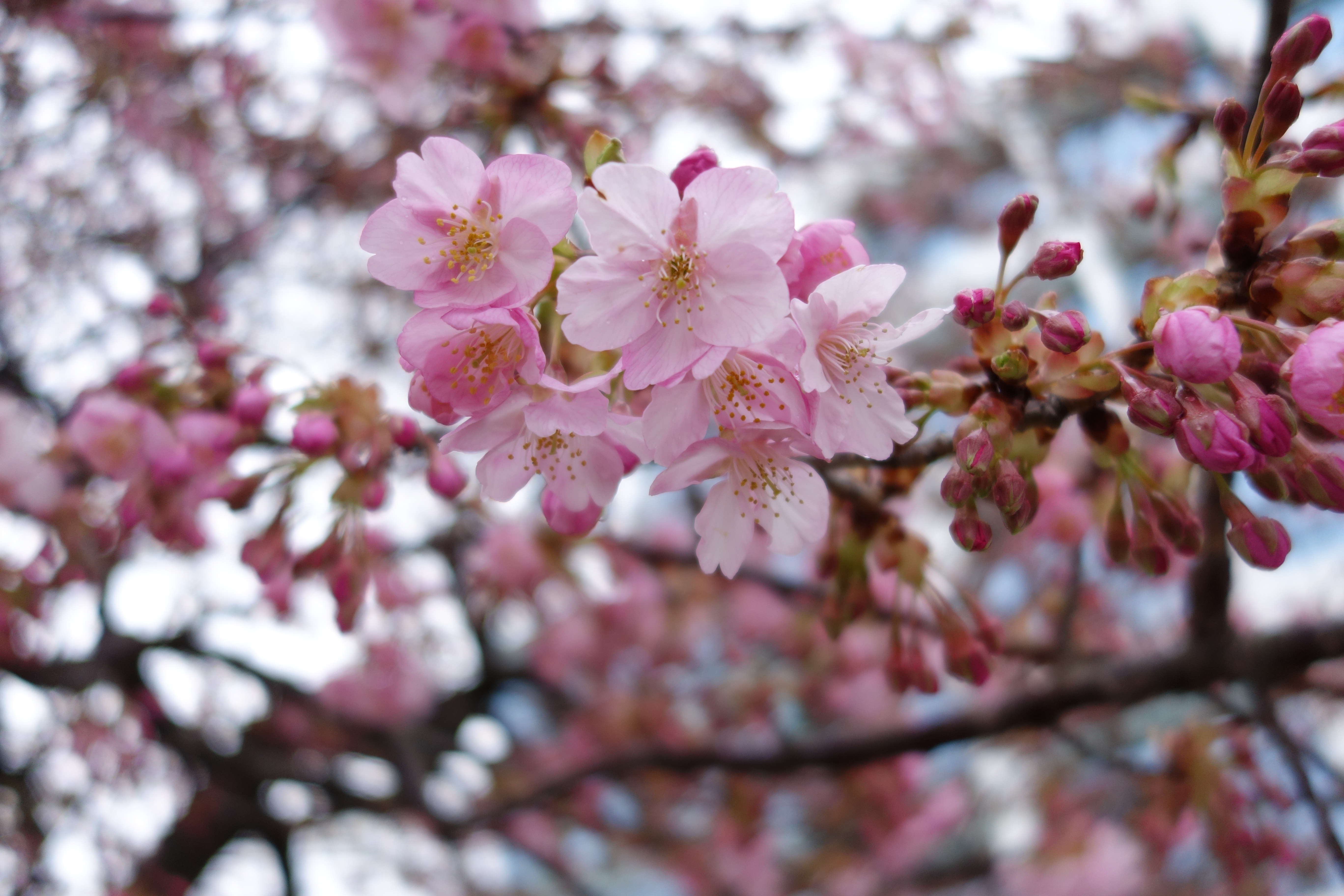 競馬場の河津桜、いよいよ咲き始めました。満開よりもこのぐらいの蕾がふくらんだ桜の方が個人的には好きなんですよね。