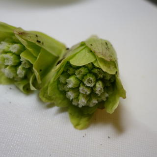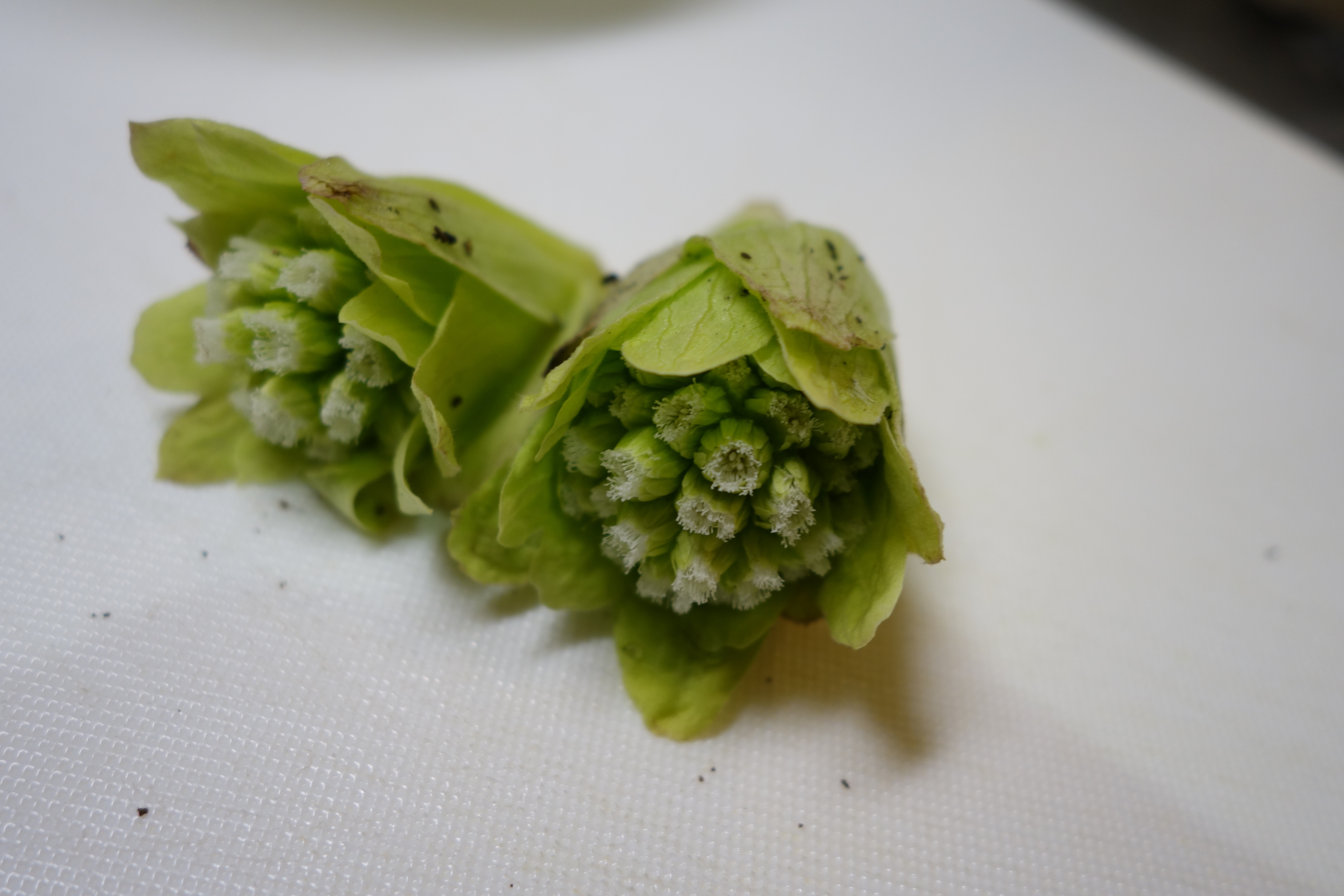 春を感じる北海道土産。でっかいふきのとう、ふきのとう味噌になりました。