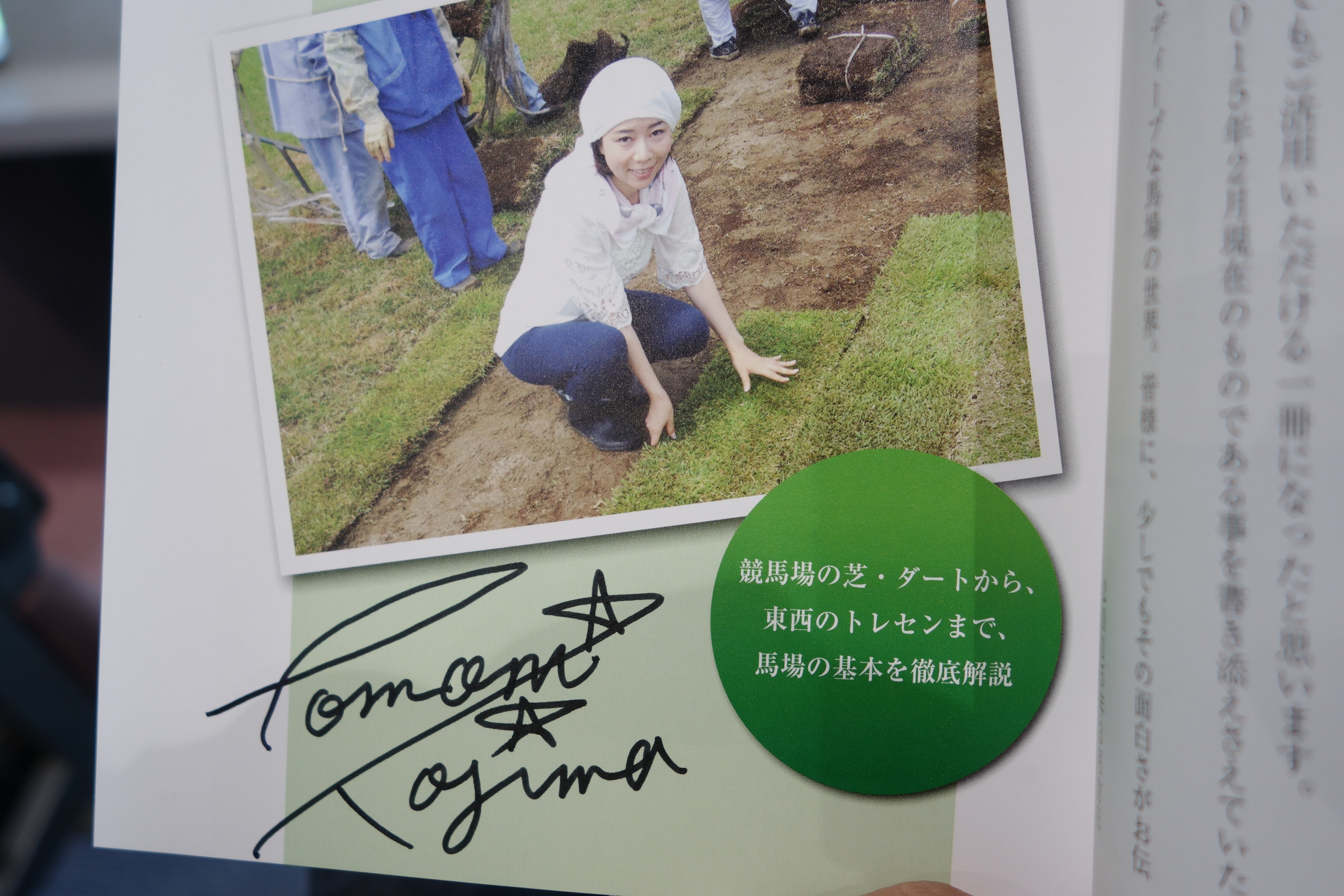 本が届いたらいただけると約束していたので、週末に早速競馬場でいただいちゃいました、サイン。一番お気に入りのページはここだそうです(笑)いいかも。
