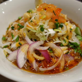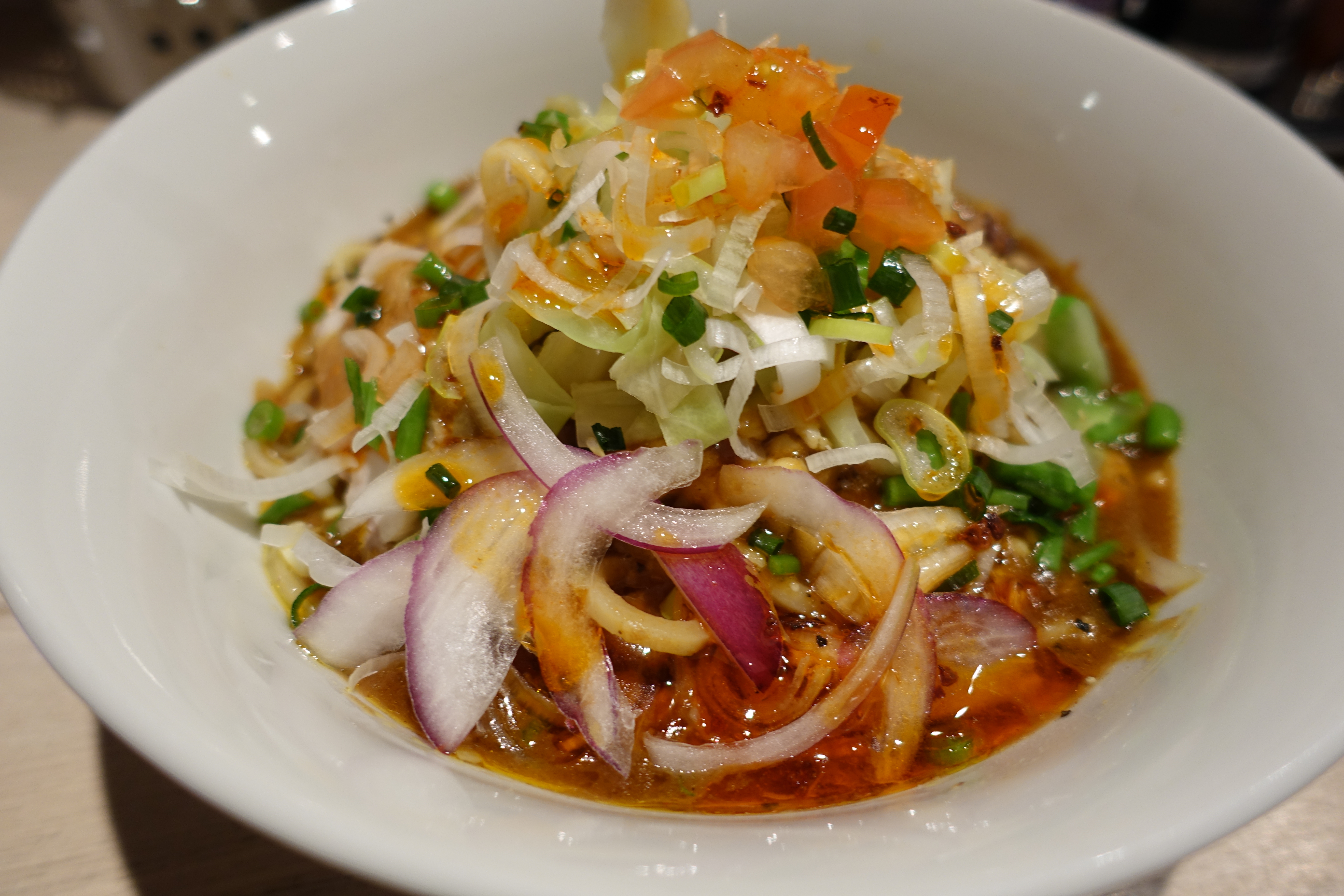 明日は定休日 シェフからの伝言です。明日は臨時休業ではなくて「定休日」です。くれぐれもお休みだからとか勘違いしてお店に行かないように(笑) 今日はカレーまぜそば。カレーが強く主張せず、カレーの風味を活かしたまぜそばです。でも、当然〆のご飯との相性もばっちり。美味いんですよね。