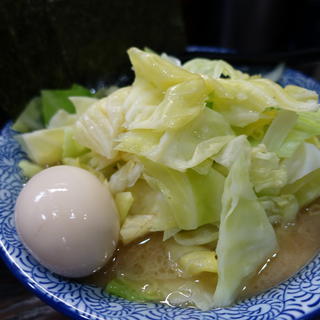 キャベツと玉子トッピング。豚骨醤油に会うんですよね。というか麺よりキャベツが多いんですが(笑)
