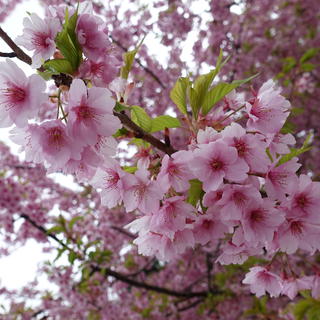 競馬場の河津桜が満開。ここの桜は花が開いてからだんだん色が濃くなるんですよね。