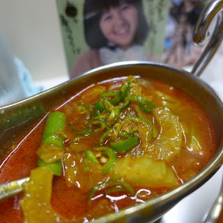 春の夜かれー、はじまりました。小柱と鶏挽肉、セロリとアスパラとししとうの具だくさんなかれー。この季節の変わり目の最初の一杯がたまんないんですよね。