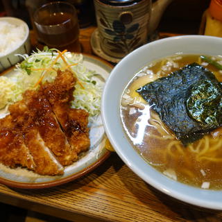 とんかつとラーメンの店 城南地区では当たり前のようにある、とんかつとラーメンの店。こんな食べ方できちゃいます。カツはチキンカツなのでさっくさくのぷりぷり。ラーメンは昔懐かしい系だけどチャーシューは工夫されてて美味いんですよね。