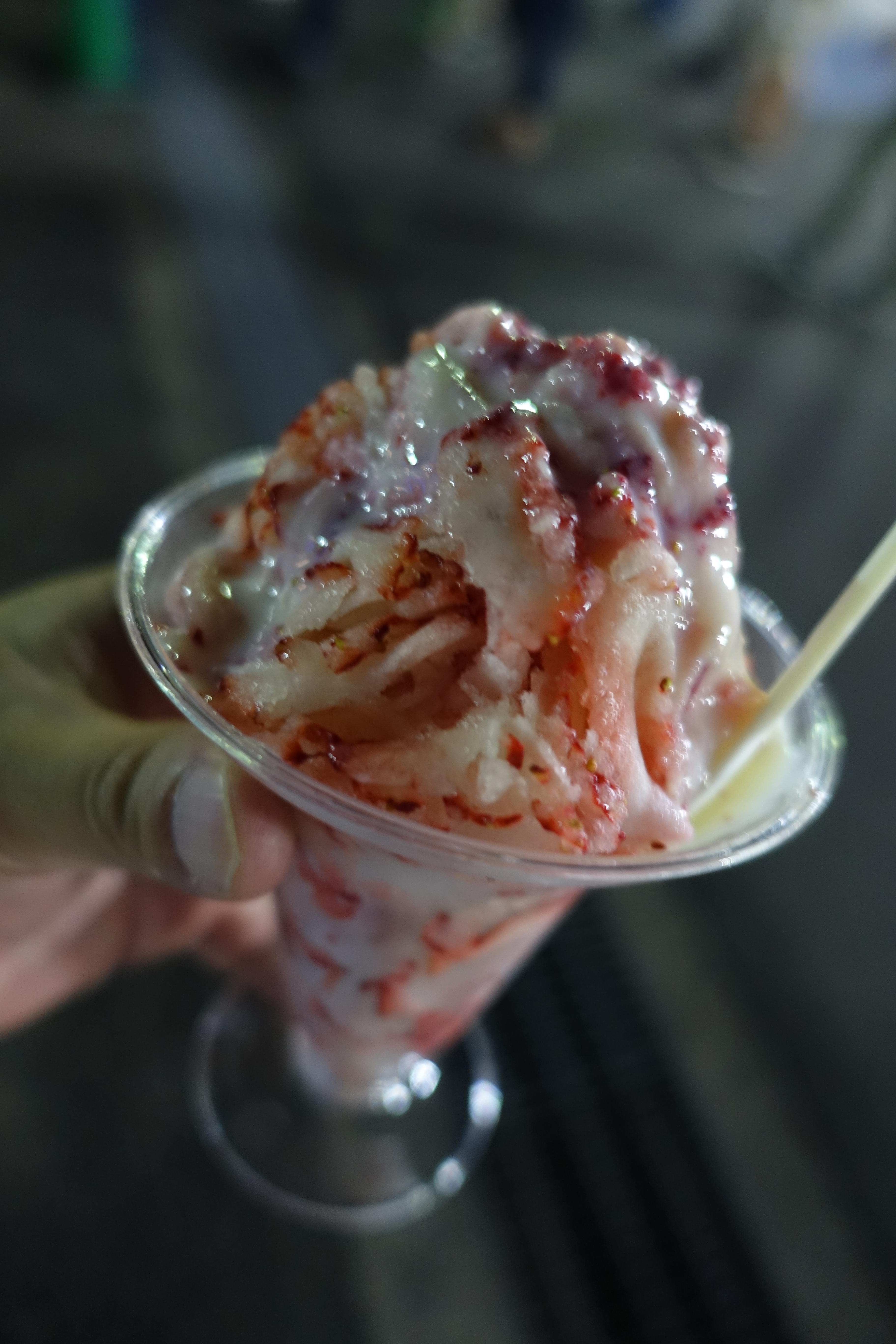 今年も元国民的アイドルグループメンバー 船橋の削りイチゴが大井より美味しいということで確認しに船橋へ。これは札幌競馬場で売っていたリアル氷イチゴと同じで100%冷凍イチゴだけで作った削りイチゴですね。イチゴの味がしっかりリアルで美味しいけど練乳ないとちょと辛いというあれ。たしかに味はこっちの方が美味しいです。大井のはジャンキーなのでそっちも好みですけどね。今日のゲストは去年と同じく元国民的アイドルグループでの演歌歌手デビューされた浴衣の方。なぜかイベントに乱入者が居ますが(笑)公演はたまに録画で見てましたが、ホンモノ見たのは初めて。