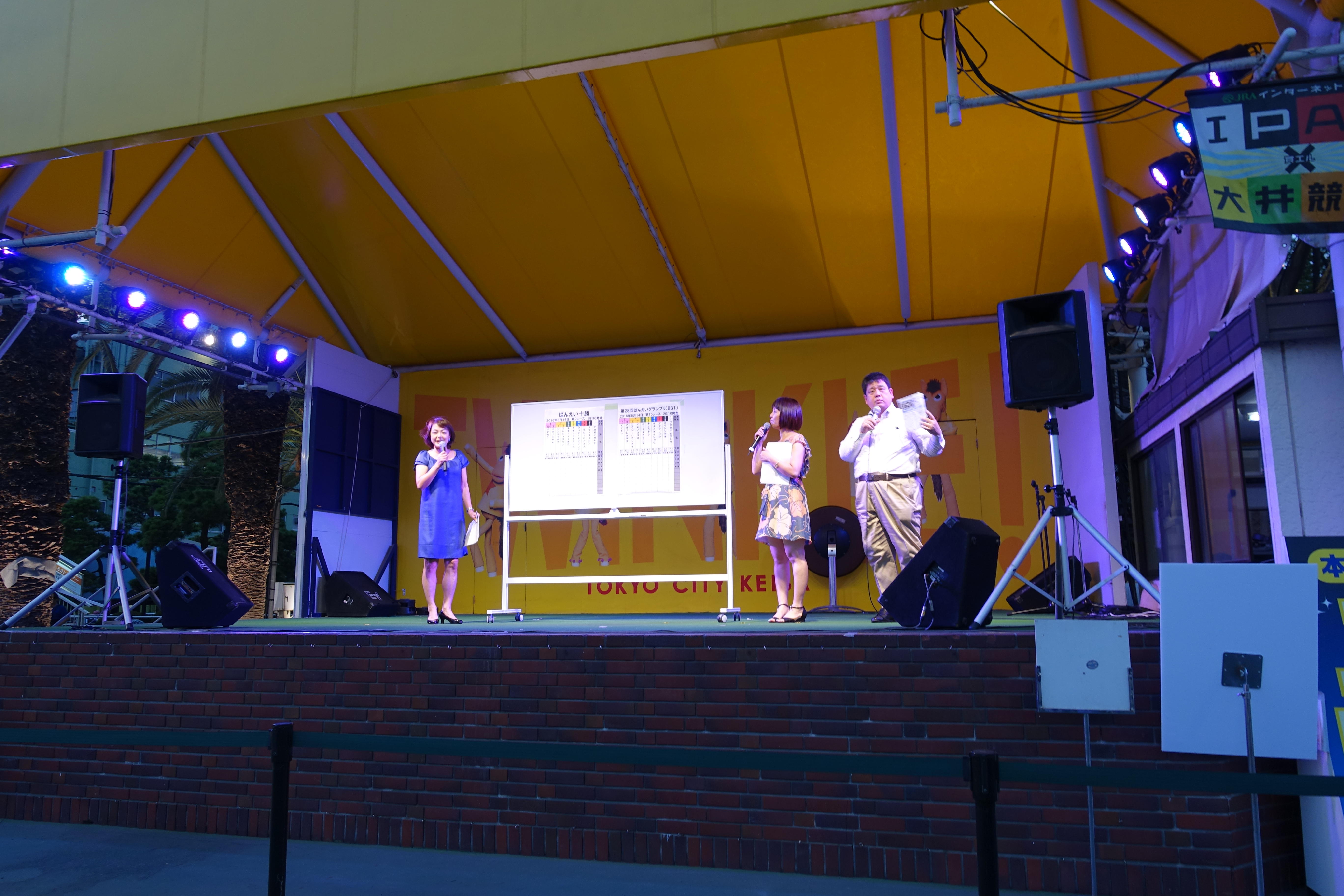 お盆の時期は日曜日も大井競馬場やってます。でも今日はふるさとコーナーのばんえい競馬。ここの方も場立ちやってるので、みんなでワイワイ楽しめます。