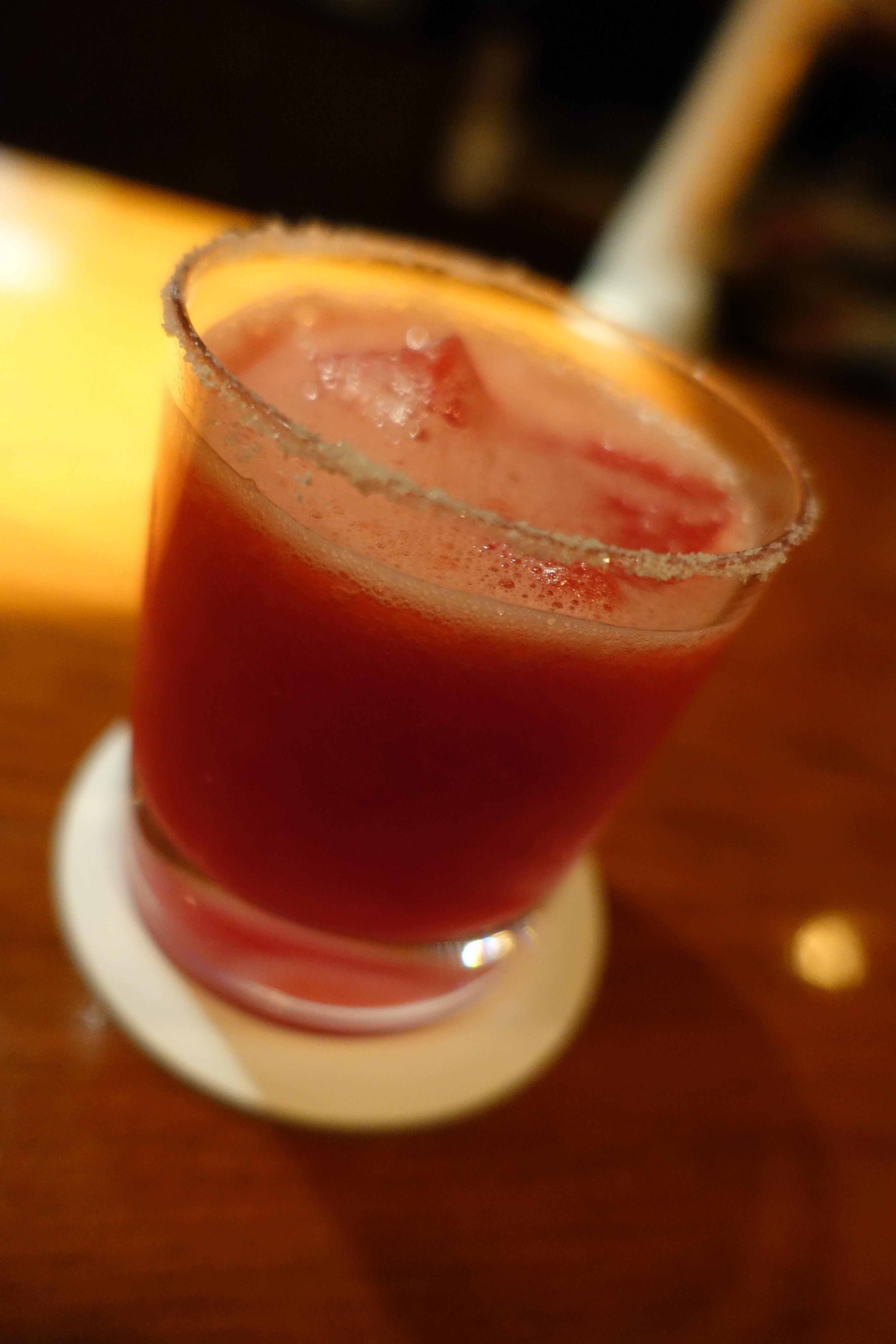 スイカのソルティドッグ 今日は母親の誕生日祝いで鹿児島の豚しゃぶを食べに行って帰りによった何度か来たことのあるバー。夏場の名物はスイカのソルティドッグ。こちらのは氷もスイカ氷なので、本物より濃厚なスイカを楽しむことができます。これはかなり美味しい。