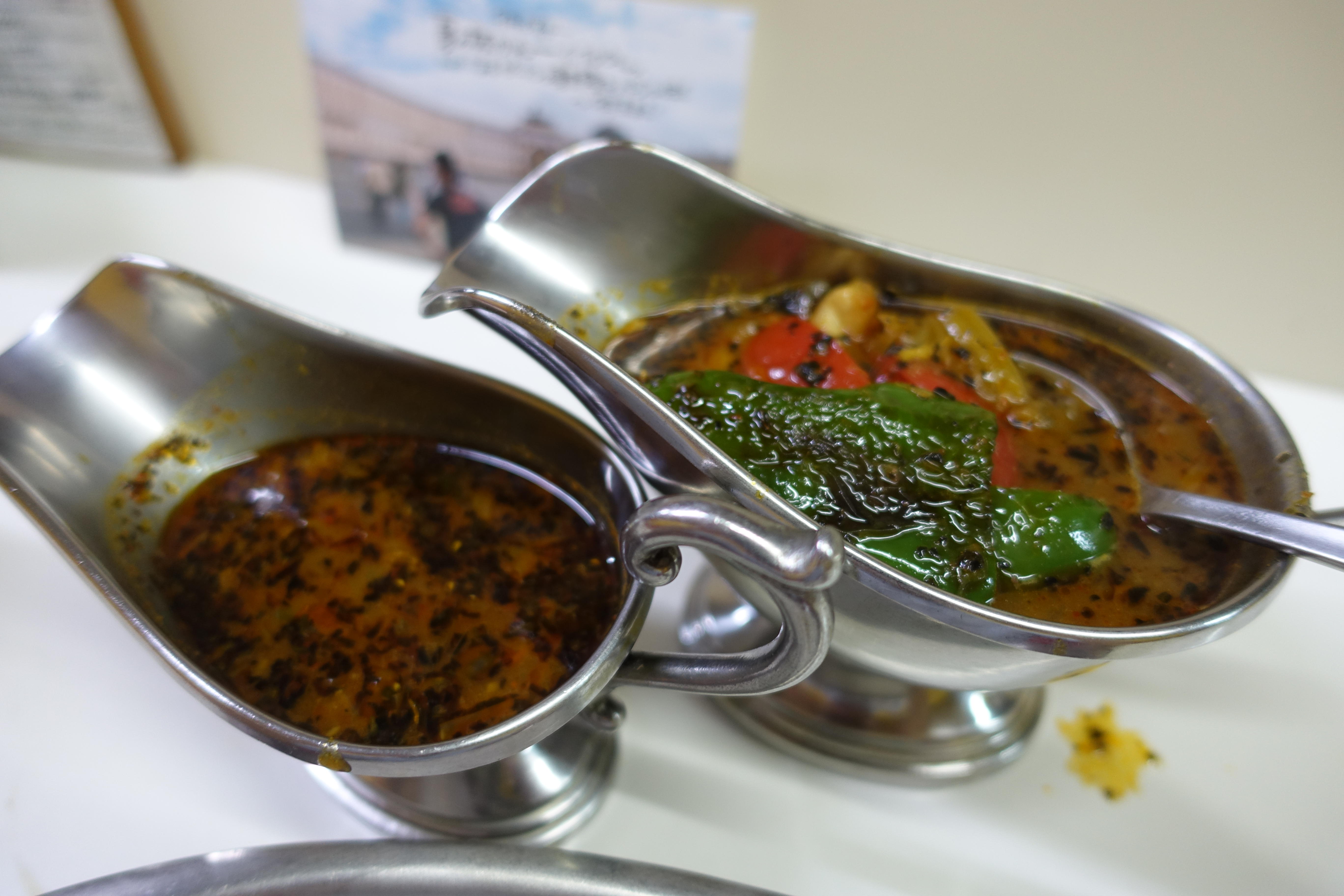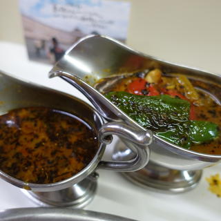 夏の始まり 今年は7-8月がゴーヤだったので、9月が季節のかれーの夏バージョン。季節のかれーの始まりとも言える、バジルのかれーにグリルチキン、ピーマン、トマト、ナスが入った色鮮やかで夏を感じるかれーです。特にすーぷにひたったとろとろのナスが自分は大好きです。