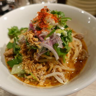 ハイブリッドの季節 今日は辛味噌ハイブリッド。ハイブリッドとは汁そばとまぜそばの中間。ちょっと粘性があるソースをたっぷりで暖かい麺をまぜながら食べる感じ。冬場はこれがいいんですよね。もちろんソースが多いのでリゾットもバッチリ。