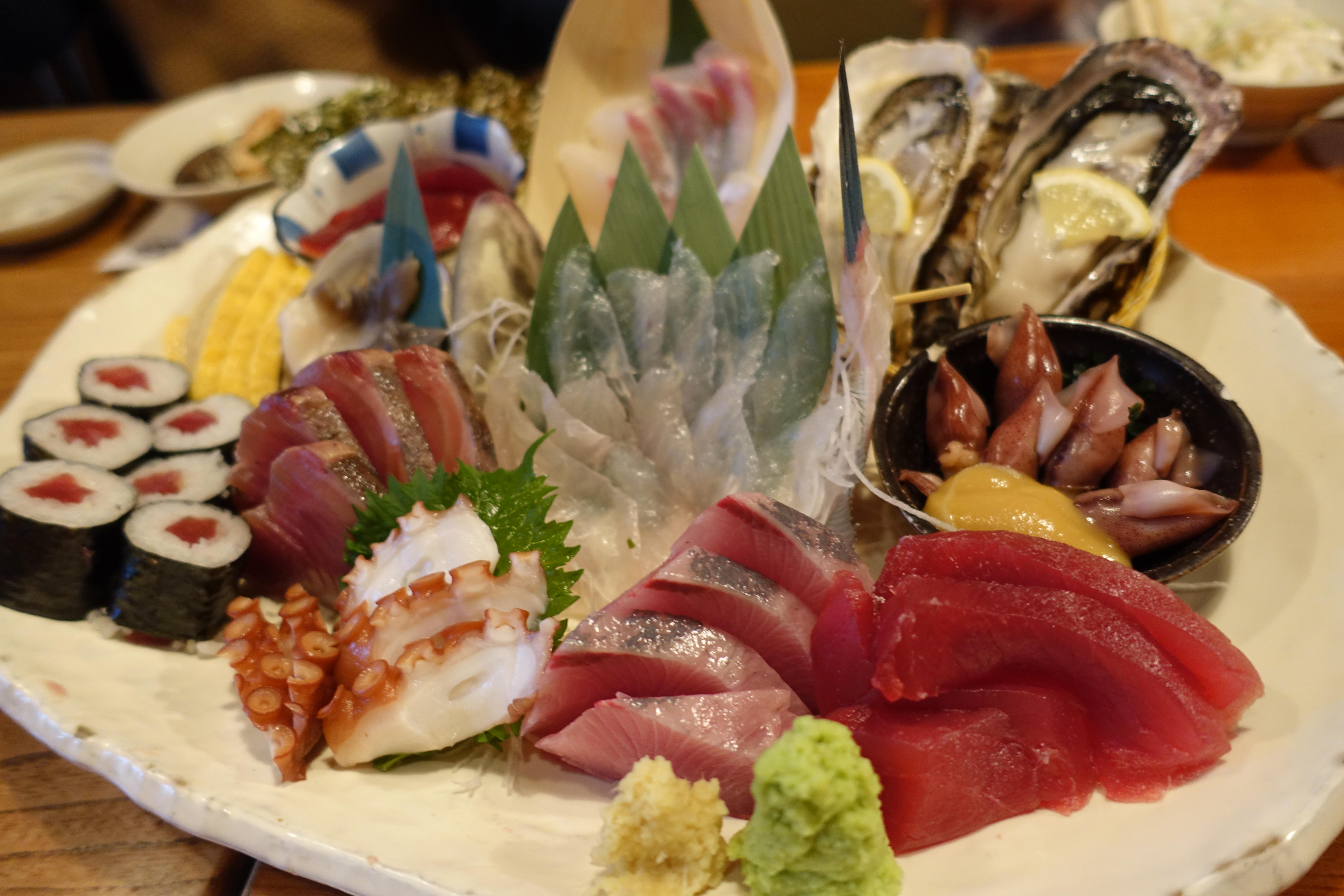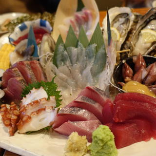 刺身の6点盛りです。はい、6点...ですね。こういうお店で人気なんです。