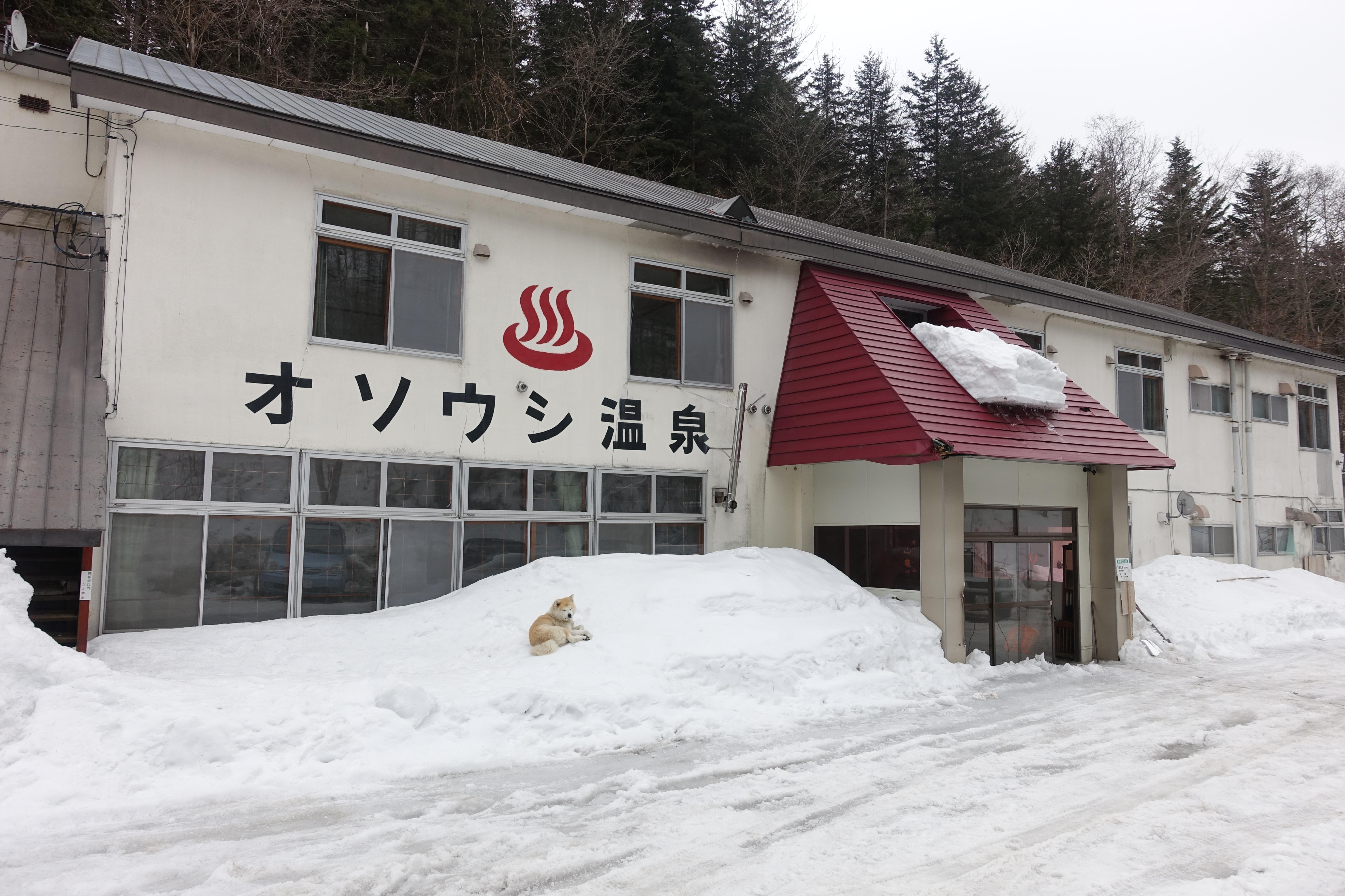 今回の遠征の秘湯はこちら。公道から雪と氷と泥と砂利をかきわけ10kmぐらい山道走った先にあります。