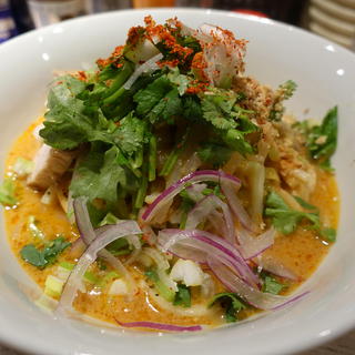 パクチーたっぷり ここのお店のメニューの特徴の一つはバランス。パクチーたっぷりでも、やたらあのキツいパクチーだけの味にならないところがここの店の凄いところ。バランスして「パクチー味」として食べられるんですよね。なんでも美味しくしちゃうのはすごいよなあ。