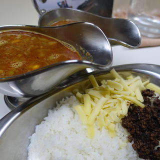 豆かれー。今日はチーズをトッピング。普通は季節の夜にはトッピングしないんですが、オススメと言われてしまうとついつい。豆+チーズ+スパイシー挽肉。美味いにきまってる。