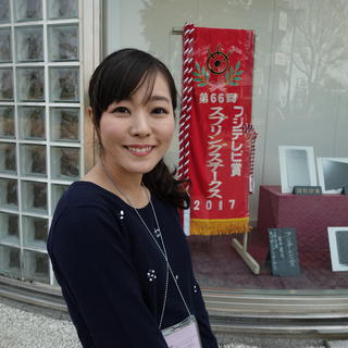熱心 もうパドックは慣れてきたかな。パドックアナウンサーの中でも最初から真面目に競馬やってる方なんですよね。競馬は100円でも馬券買わないと楽しくないものね。でも、パドックだとレースが見られないから、せめてお昼とか最終レースとかできるだけ外で競馬場の雰囲気も味わって欲しいです。 商品が豪華ですよね~と感心してました。そっちかい(笑)