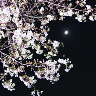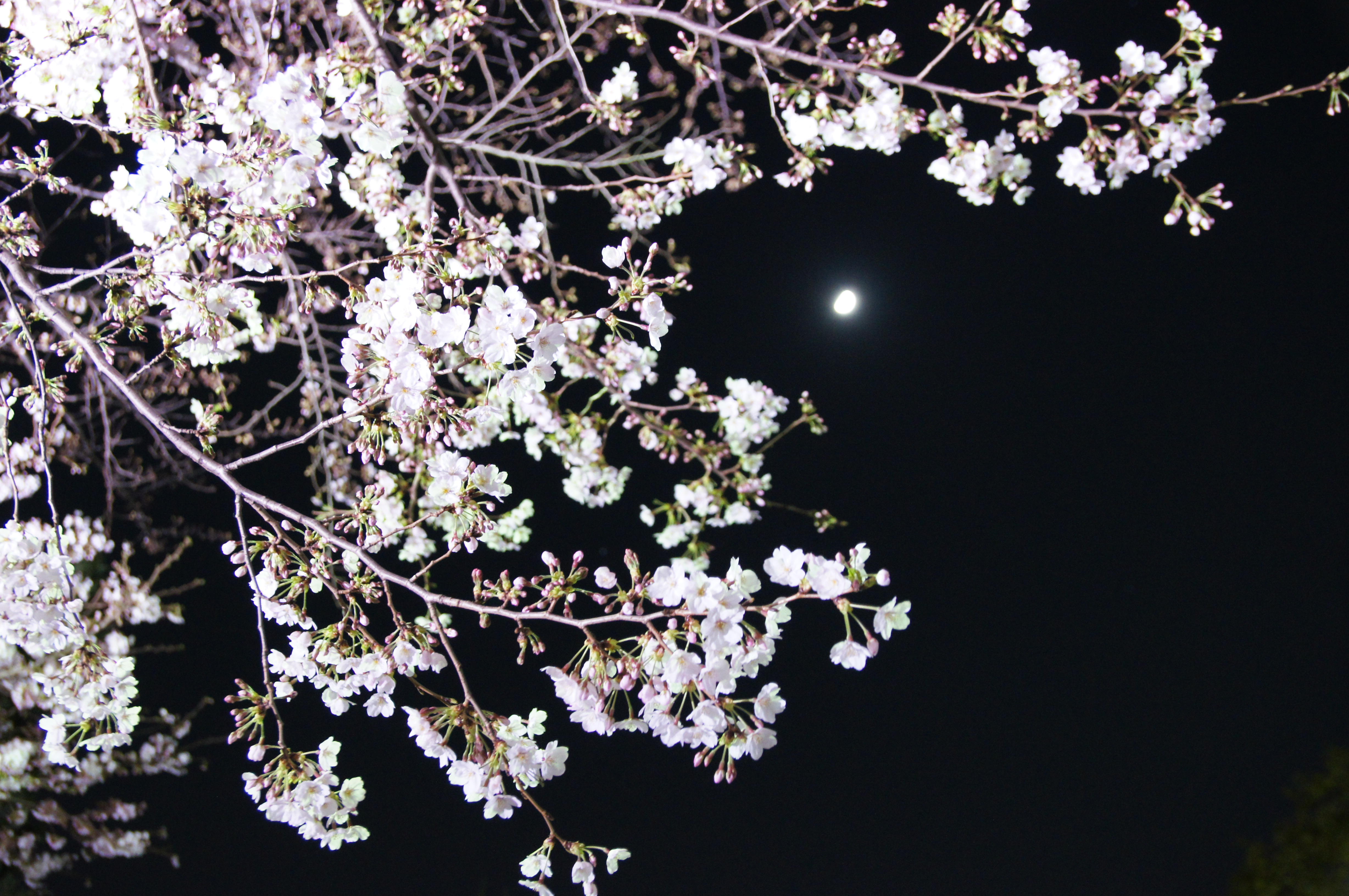 月がいい感じなので夜桜と月を撮影しに。ここはLEDが桜に合わせて色調を調整しているので、夜でもいい色が出るみたいです。そんな感じに写ってるかな?
