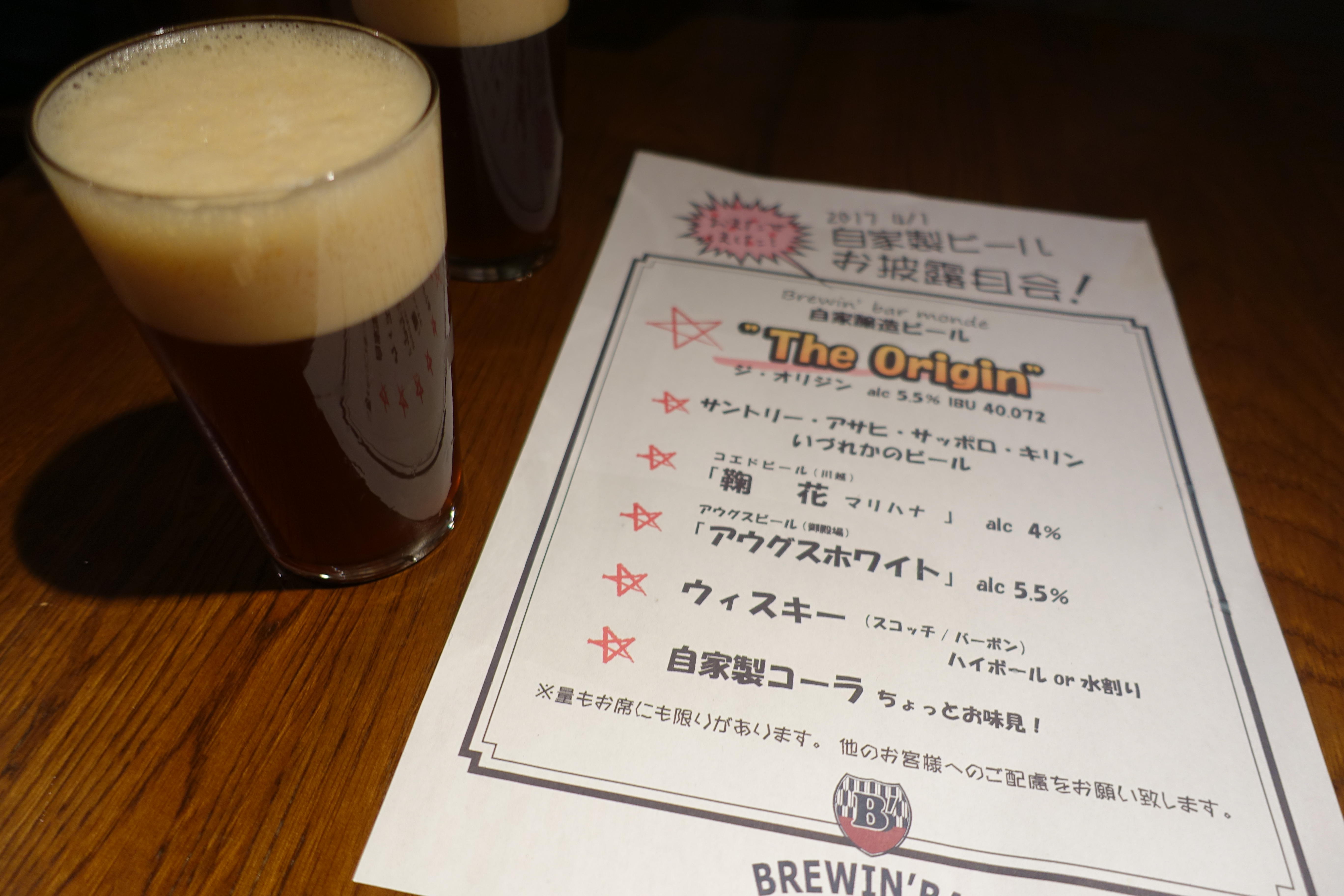 自家製ビールお披露目会 待ちに待った銀座の地ビールのお披露目会。名前はThe Origin。ガンダムっぽい名前です(笑) 基本的にビールはそんなに飲まないのですが、ここでは別。そのビールが美味しいんですもの。