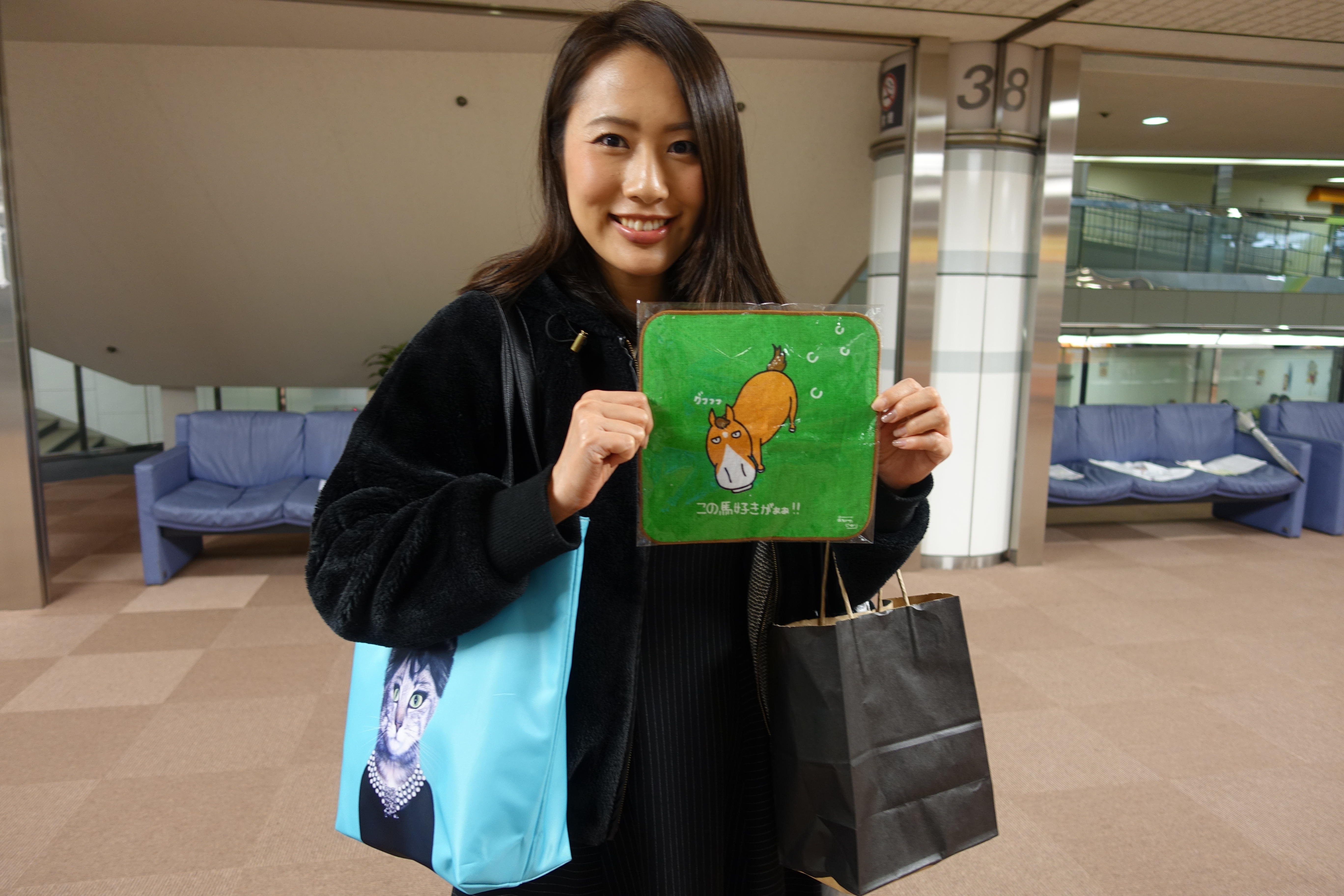 今日はトークショー+講師のお仕事。大きい猫の鞄いいですね~お気に入りとのこと。「この馬好きがぁぁぁ」のタオルで一枚。