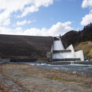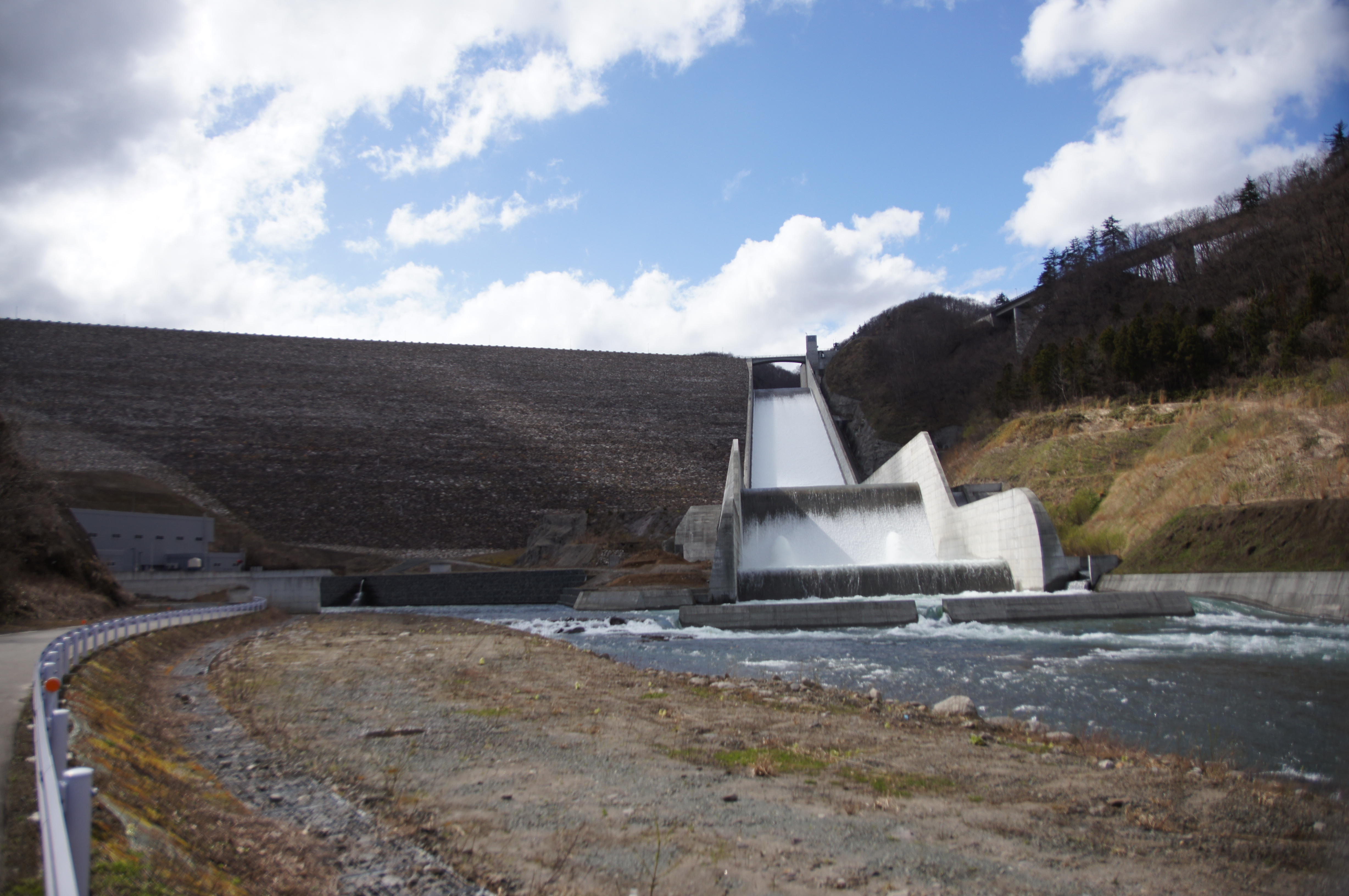 迫力あんまりなし 貯水量といい高さといい、日本で有数の大きさと高さを誇るロックフィルダムなんですが、あまりにもでかすぎてどうも写真に撮ると迫力が出ないんですよね。水しぶきここまで飛んでくるぐらいで音もすごいんだけどなあ。伝わりづらい。