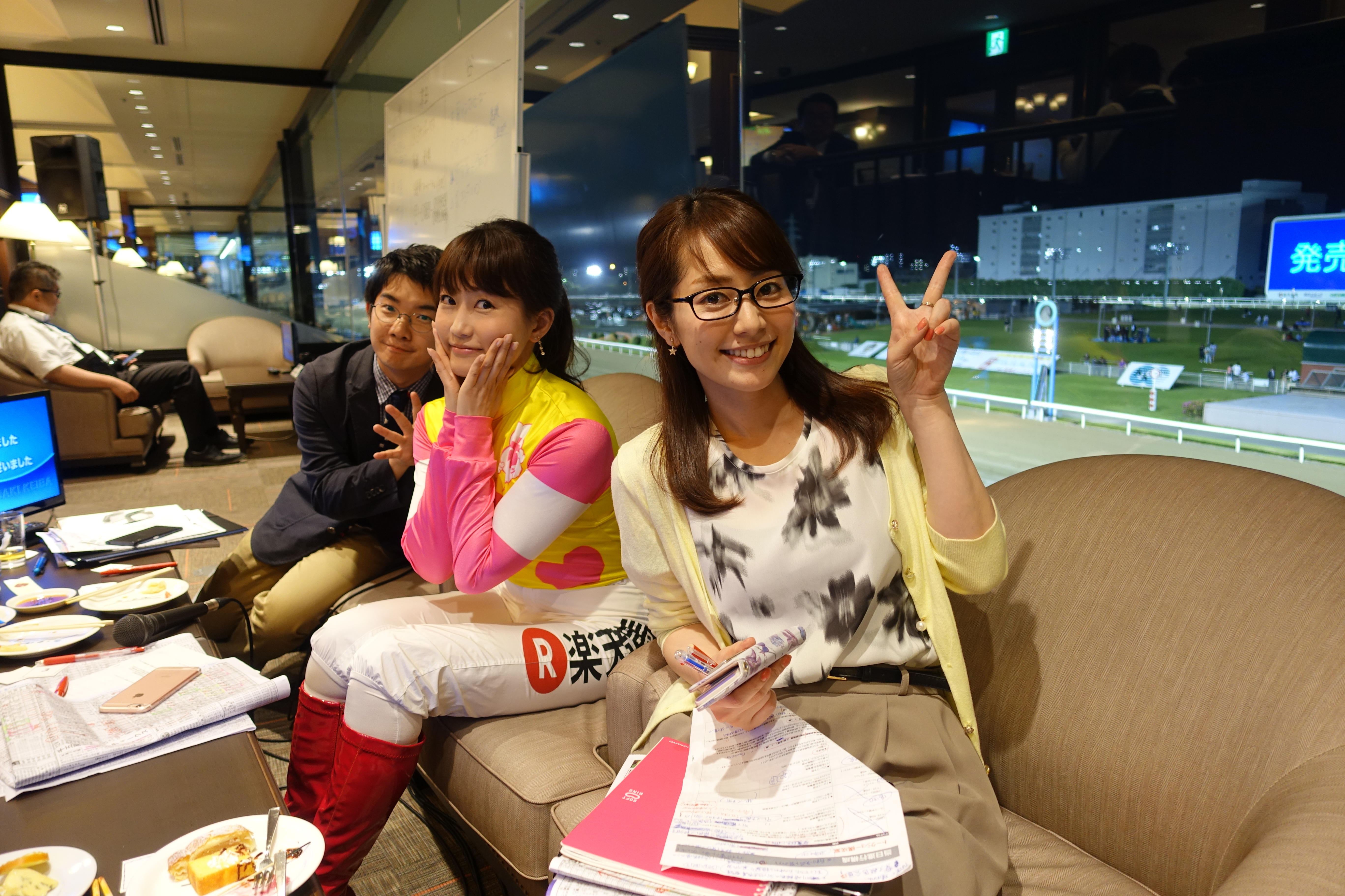 来賓室で優雅に競馬。食べ物も美味しいし、いい気分ですが何より豪華だったのはこのゲスト。最後はポッの決めポーズで。
