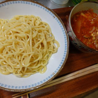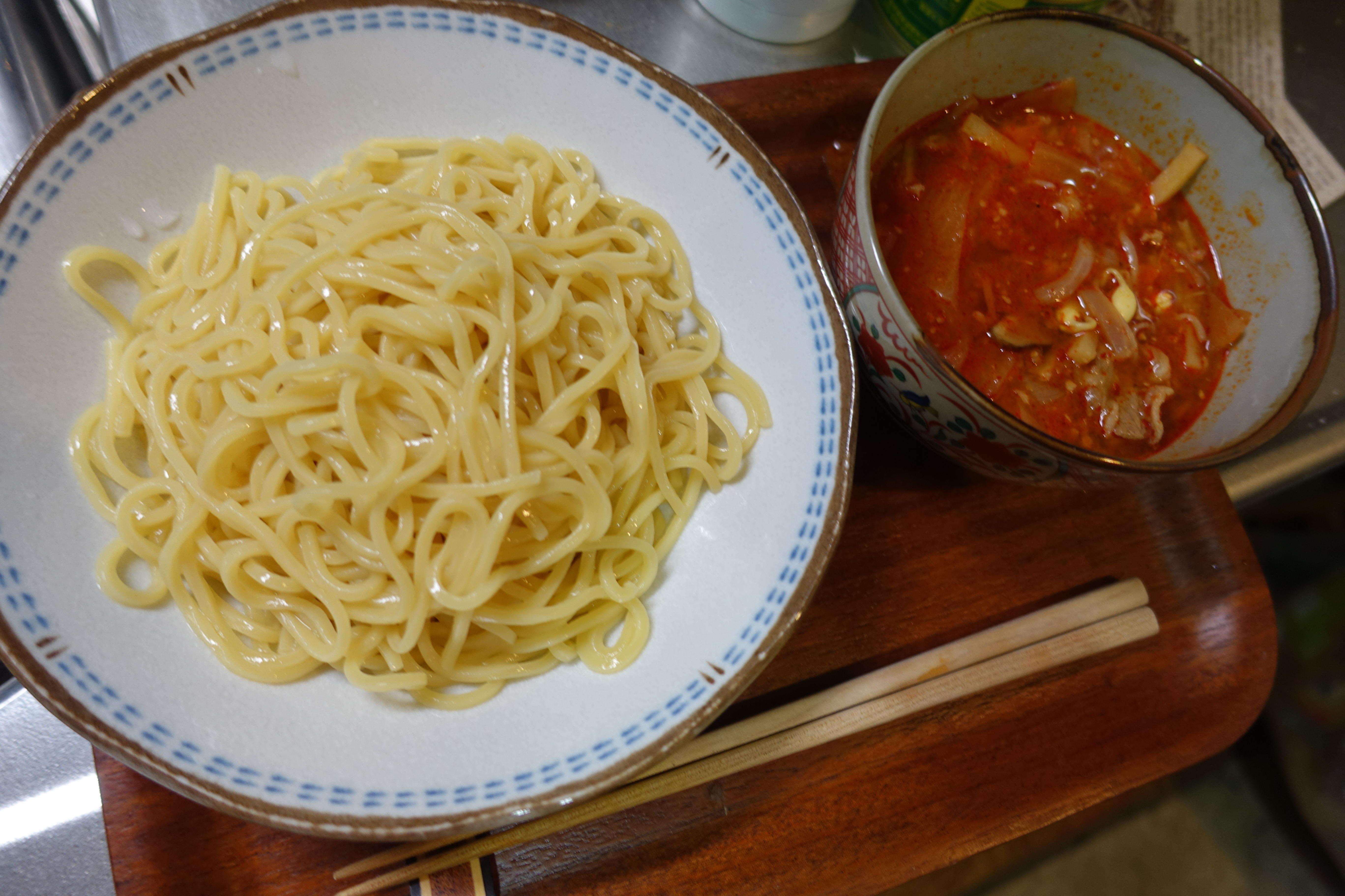 ちょっととあるルートで業務用の麺をいただいたので、つけ麺にしてみました。
