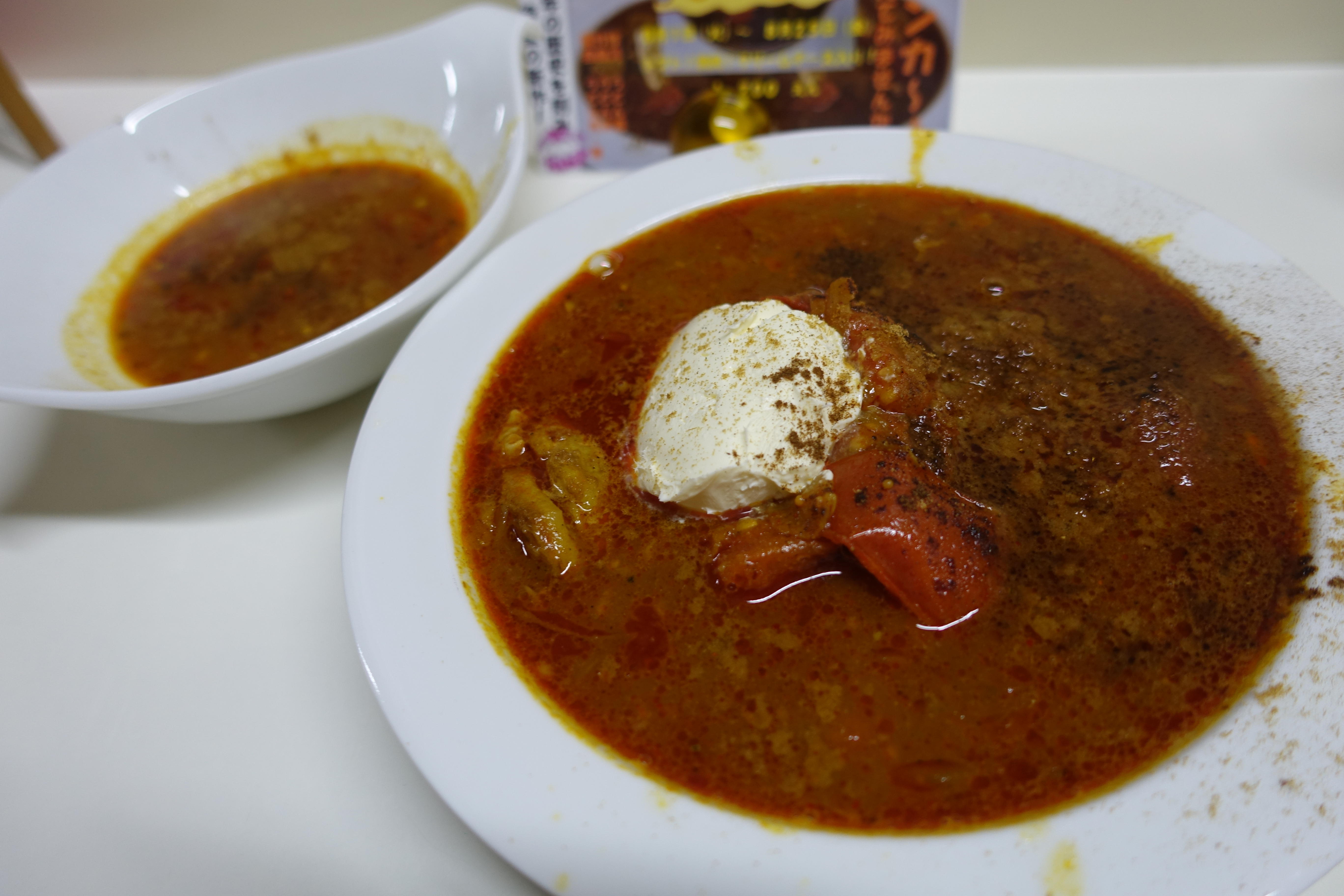 スリランカ2杯目 新作の夜かれー。真夏のスリランカの2杯目です。なんとなくわかってきたのはこのかれーの攻略方法はクリームチーズの食べ方ってことかも。鶏+トマトにクリームチーズ。ちょっと次回は少し工夫してみよう。