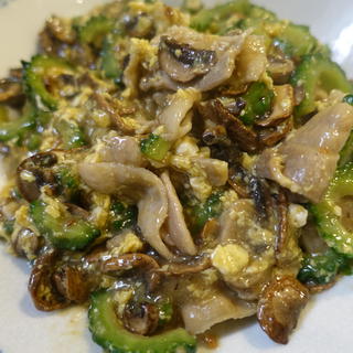 自宅のゴーヤもそろそろ終わり。そのゴーヤと昨日競馬場で買ってきた乾燥の八幡平マッシュルームを戻して豚肉とあわせて塩味で炒めました。乾燥マッシュルームの出汁がすごく利いて美味い!