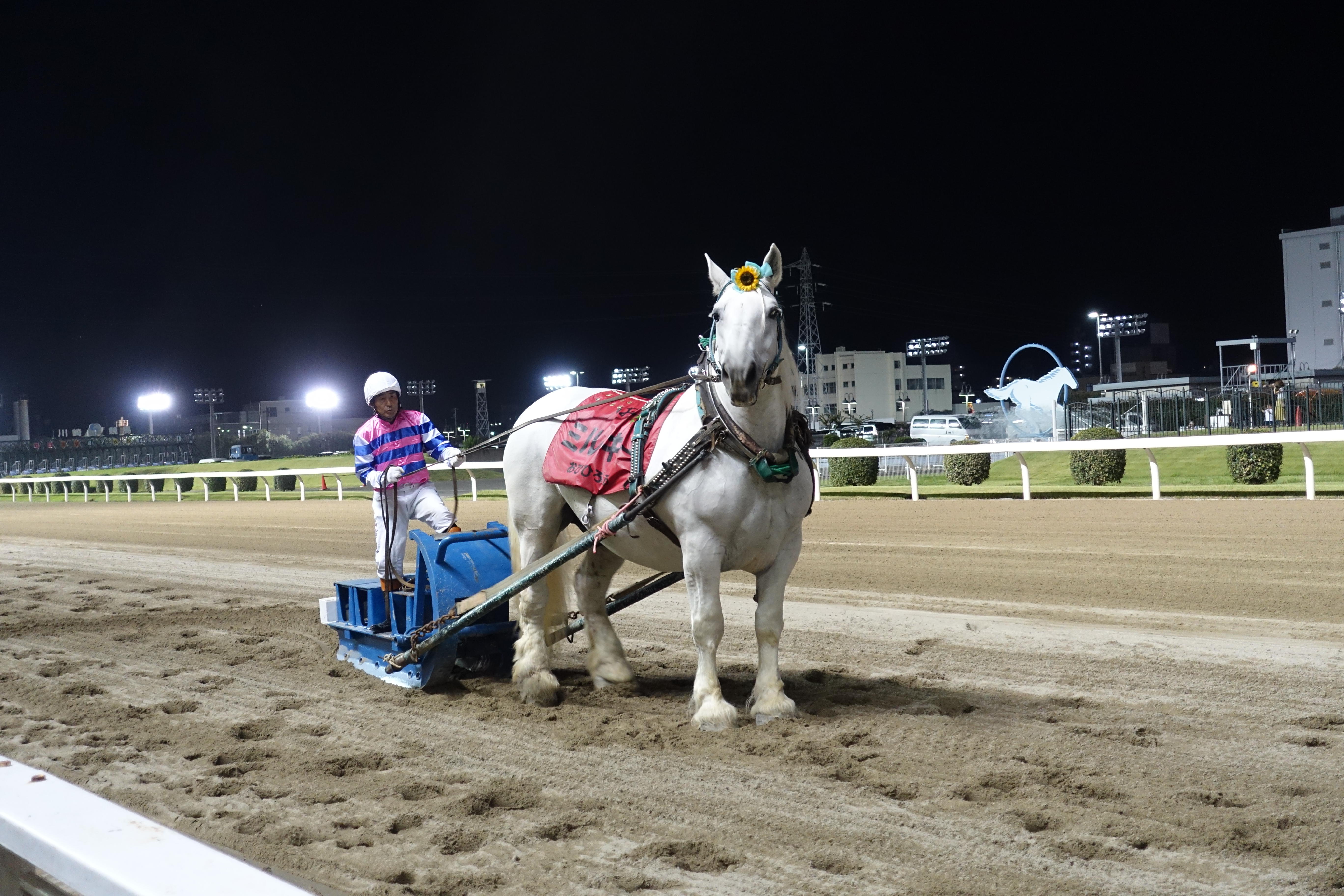 土曜日は川崎ナイターでミルキーの実演がありました。450kgじゃ軽々と挽いちゃいますよね。折り返した瞬間、こっちをじっと見ています。多分私の隣の人が気になったからかな(笑)