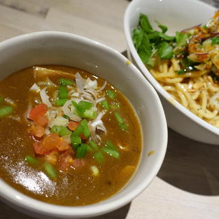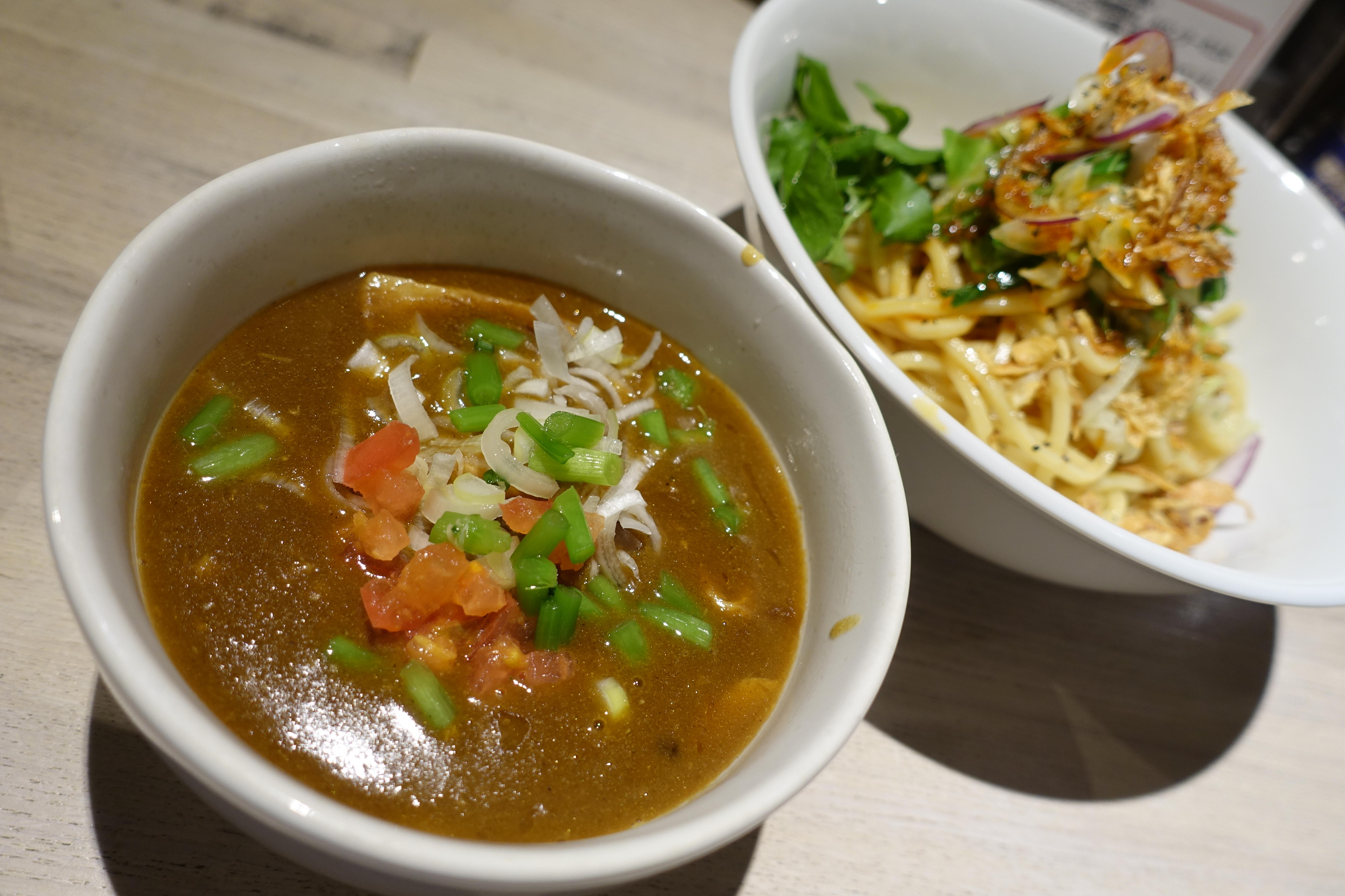 名前の通りポークカレーつけ麺。カレーの味も美味しいし、麺と最後のリゾット両方とも美味いに決まってるつけ麺です。