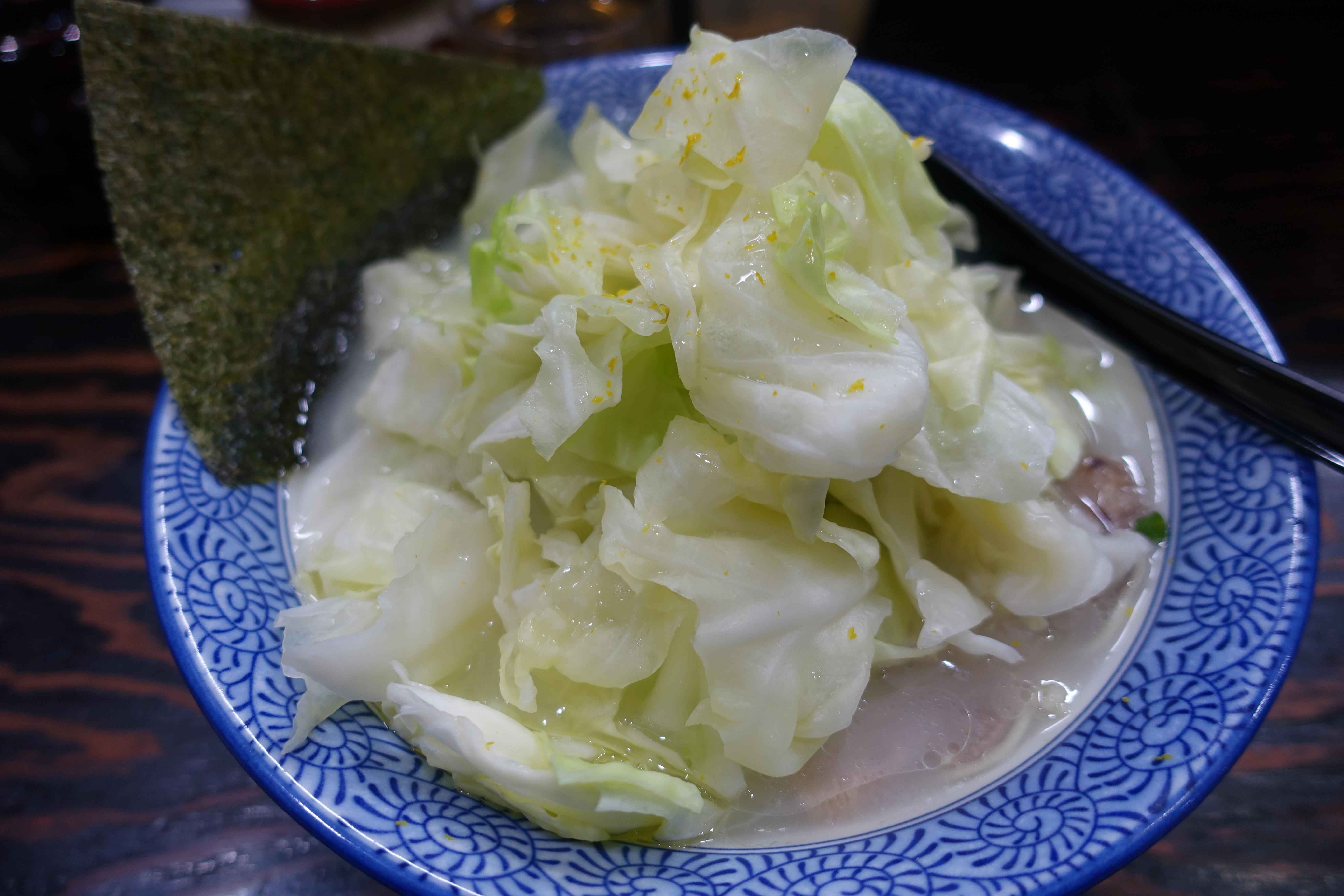 近くのお店、鶏ラーメンを限定期間でやってるんで、いつものキャベツと。