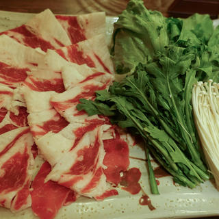 正月のスキー、夕ご飯も豪華。イノシシのしゃぶしゃぶ。レタスと食べると美味いんですよね。