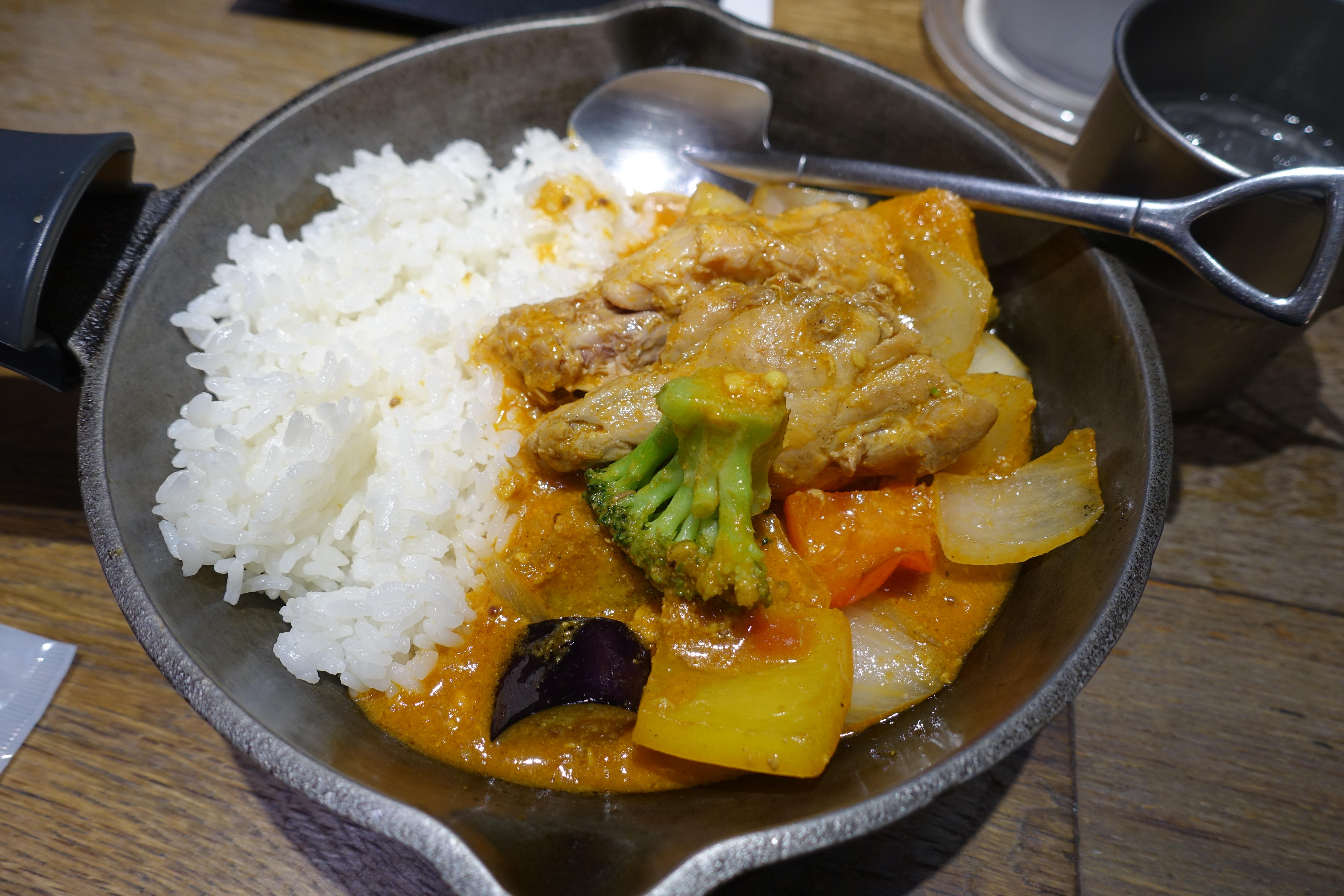 久しぶりのアウトドアな雰囲気なカレー屋さん。今日は南インド風なカレー。辛くないこういうカレーも好きなんですよね。