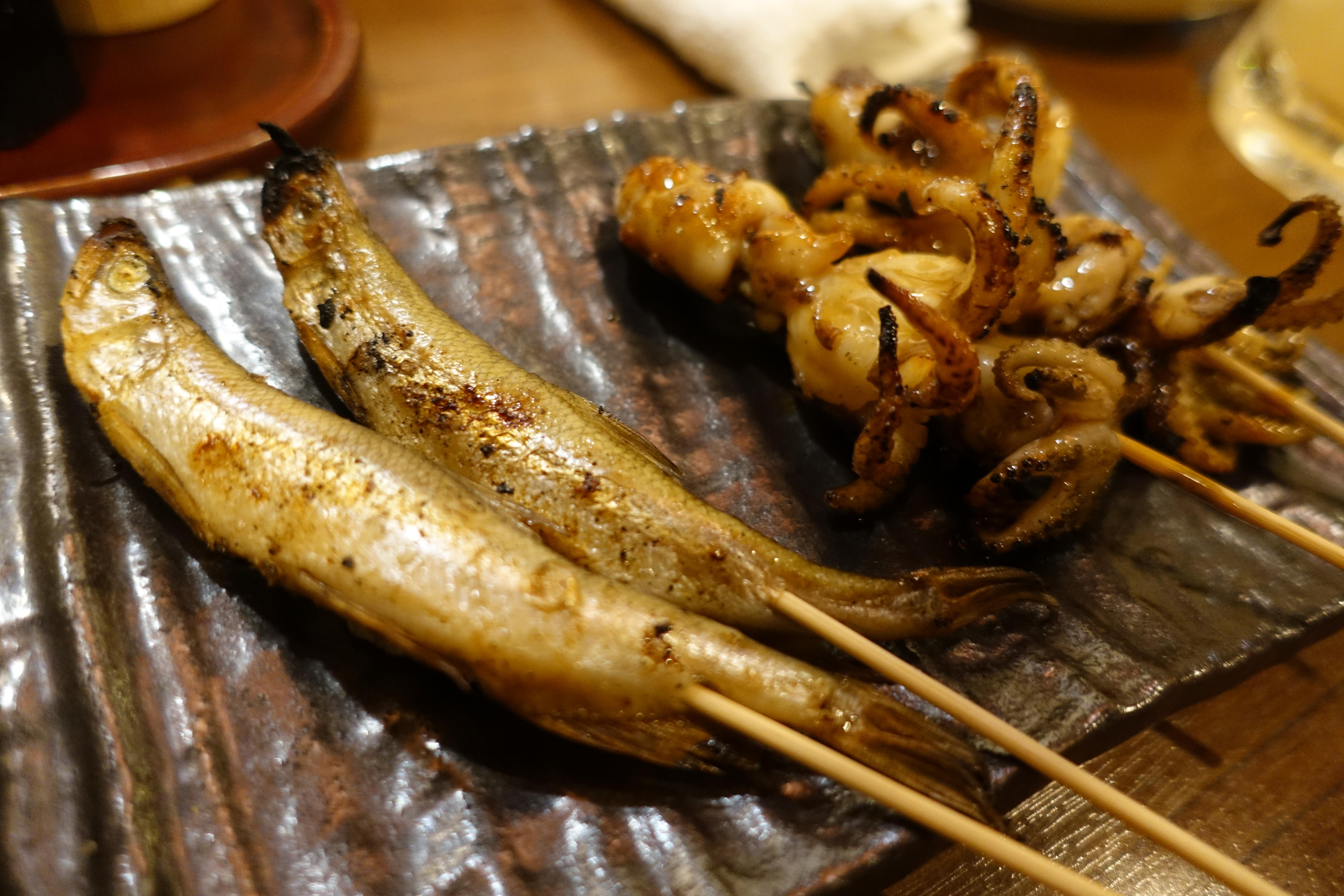 今日は焼き鳥ならぬ焼き魚串。種類が多くてこれはこれで楽しいですね。