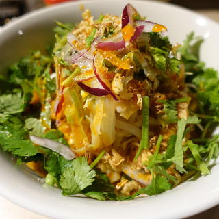 パクチー好きにはたまらない感じでしょうが、意外とパクチーだけにならないのがここのお店のすごいところ。この量でも他の味がしっかり生きて、パクチーとの組み合わせを楽しめます。