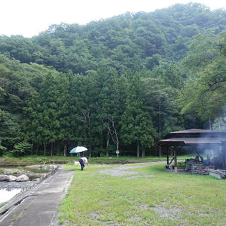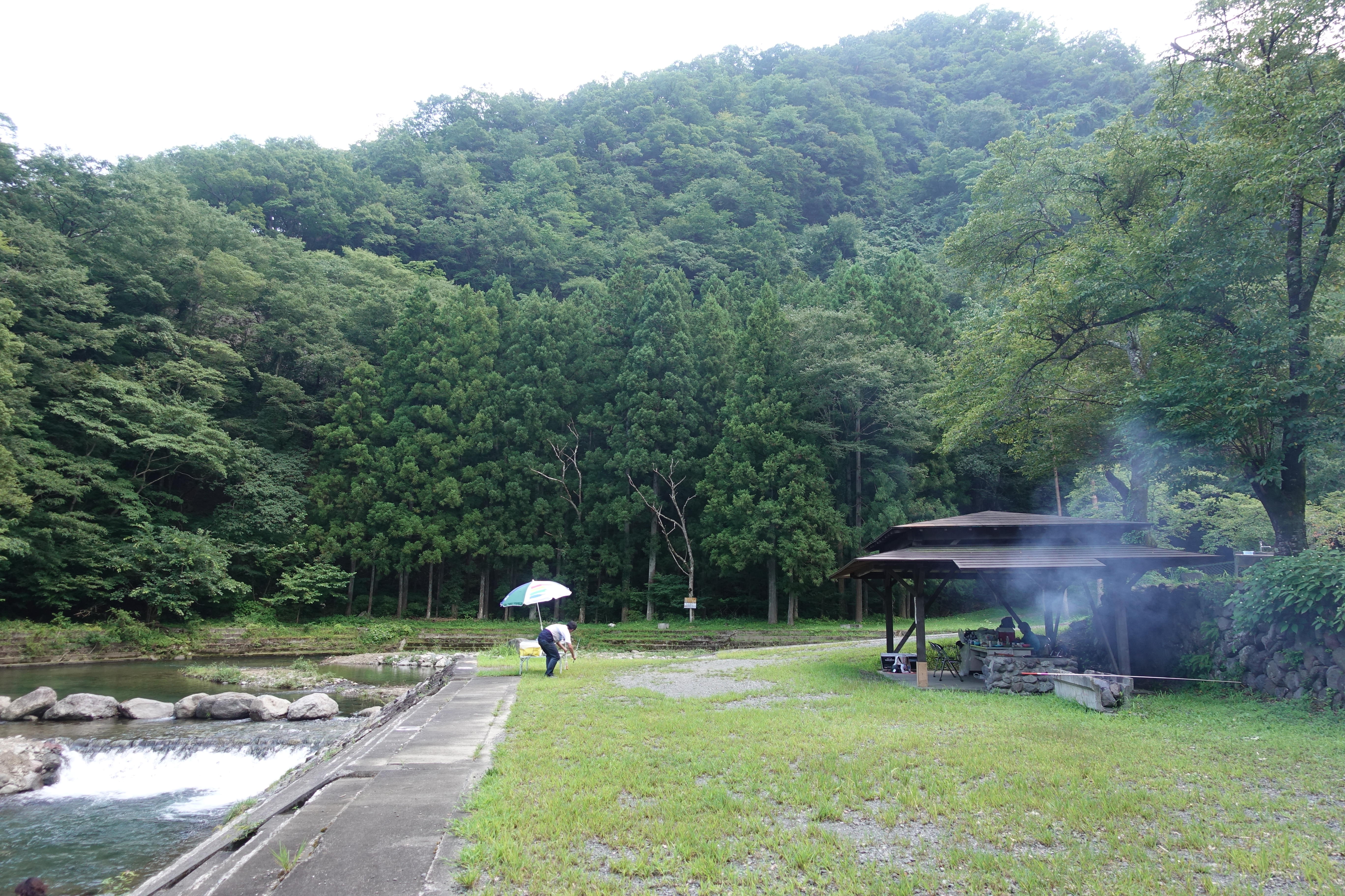 毎年恒例のニジマス釣り&BBQ。のーんびり川で釣りをして、のんびり肉を焼いて食う。