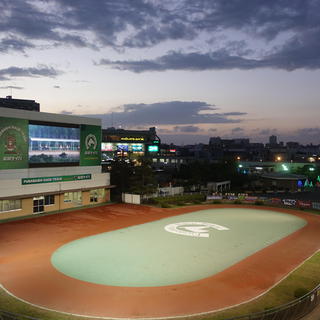 夏の夕暮れ。ナイターはこれから盛り上がります。