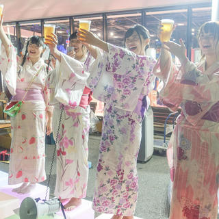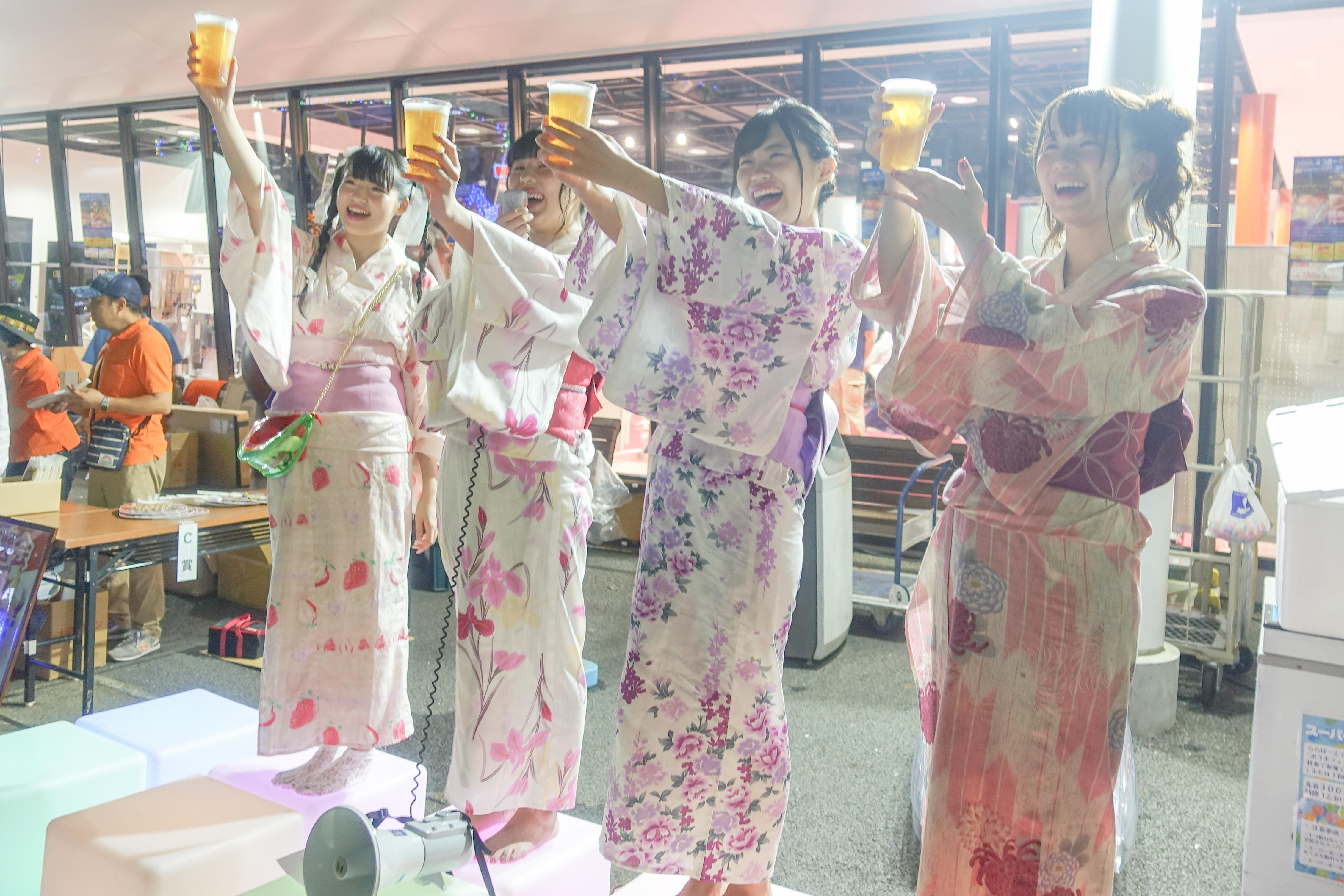 今日はお昼のライブの後は、浴衣でイベント。恒例の乾杯も浴衣姿で登場です。