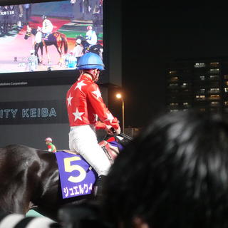 はい、勝負服をよく見ましょう。今日は的場さんはニシノの勝負服。袖に星があるのは...北の名手ですよね。