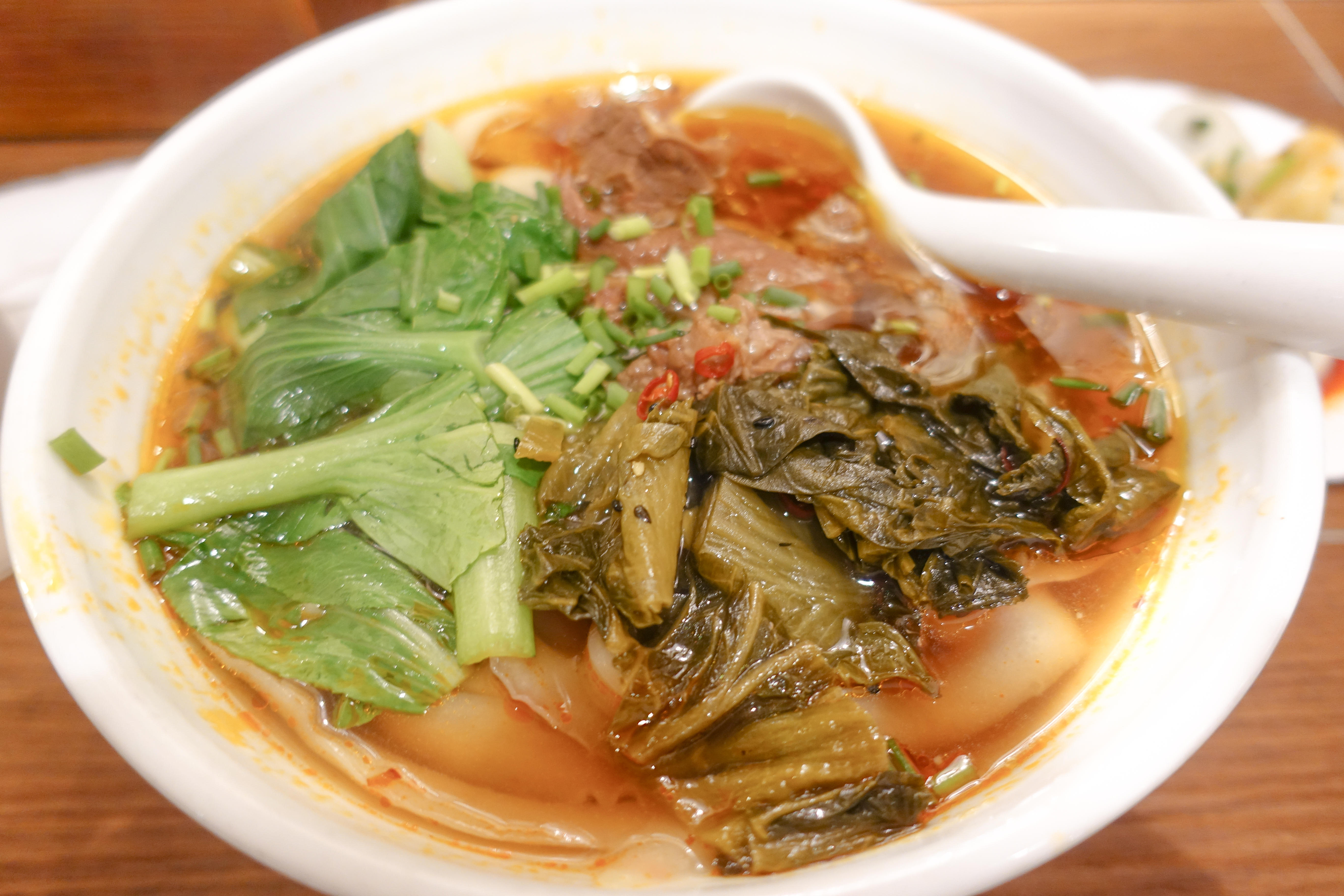 いつもの刀削麺ではない、たまには違うお店で。八角の効いた牛肉と高菜のいかにも中国っぽい料理の刀削麺でした。