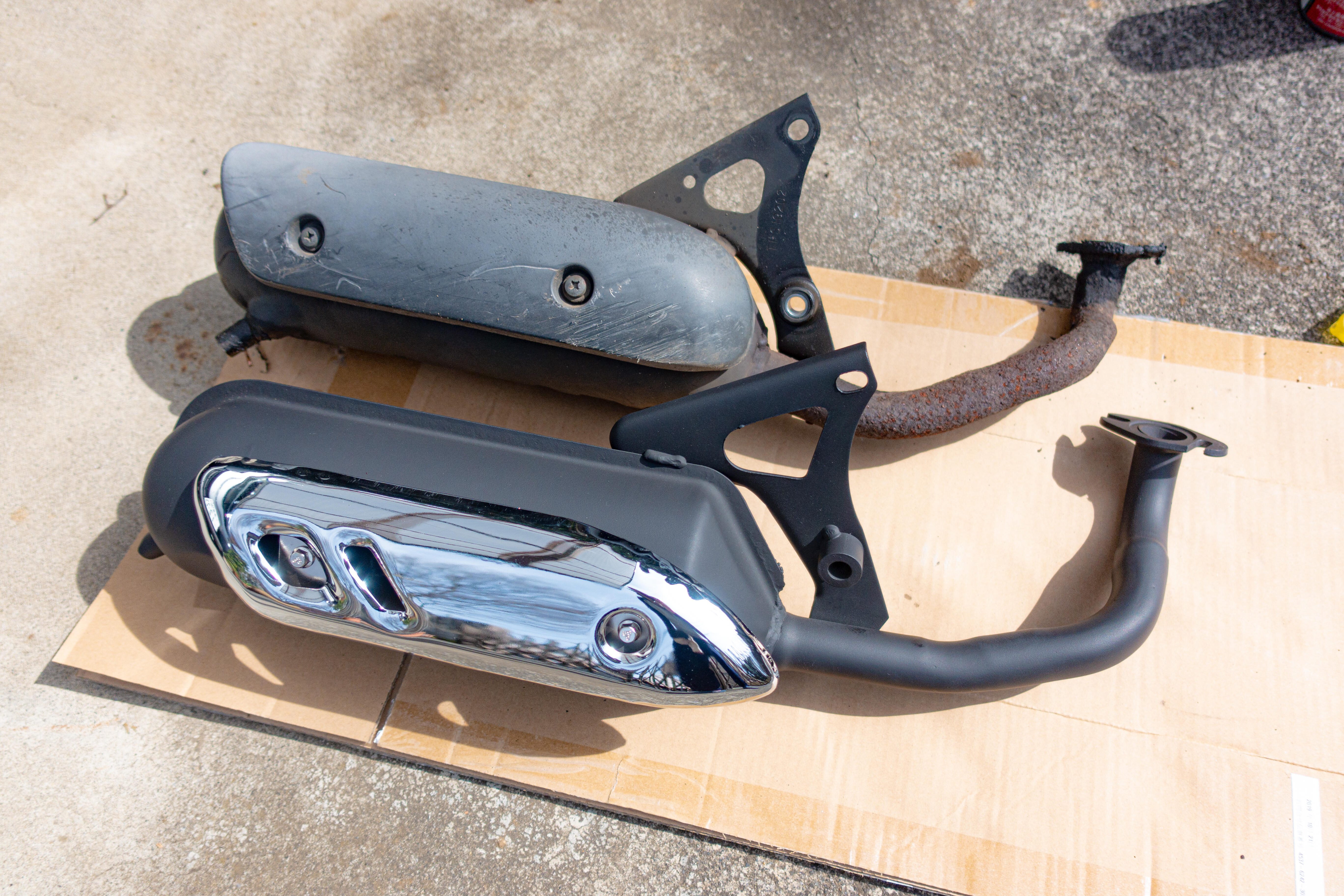 始めてマフラー交換してみました。音と煙は収まったけど、一緒にパワーも落ちたみたい。クリーンなのはいいんですけどねぇ。