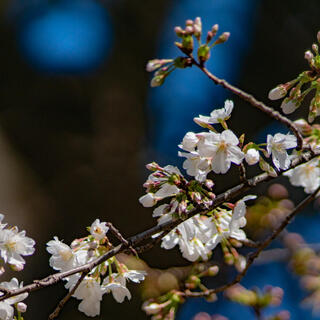 開花宣言を受けてちょっと見に来たけど、まだあまり咲いてないんですよね。寒の戻りがあるので、結構今年の桜は長いかも。
