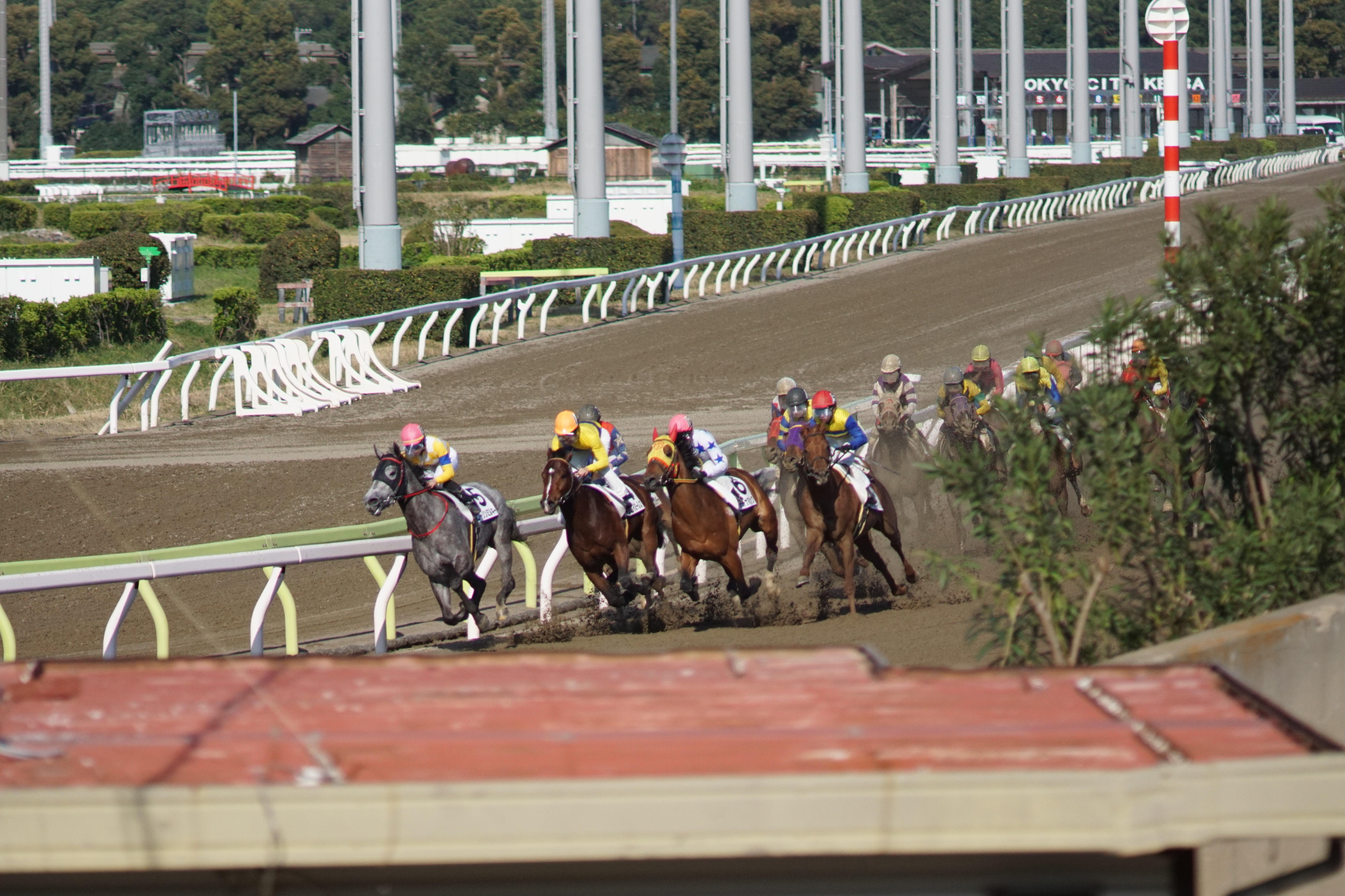 生観戦 大井競馬場の周囲を回る4kmのランニングコース。最後の橋の上りを登り切ったところで、大井競馬場全体が見渡せるんですよね。そこから下ってゴールに向かう。そんなポジションで丁度レースやってました。 生で馬が走るの見たの、何日ぶりだろうか...。