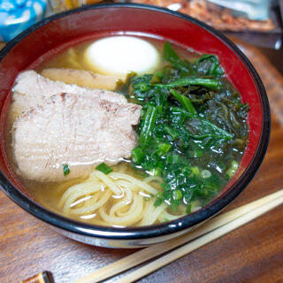 昨日の夜に仕込んだチャーシューとその煮汁でラーメン。