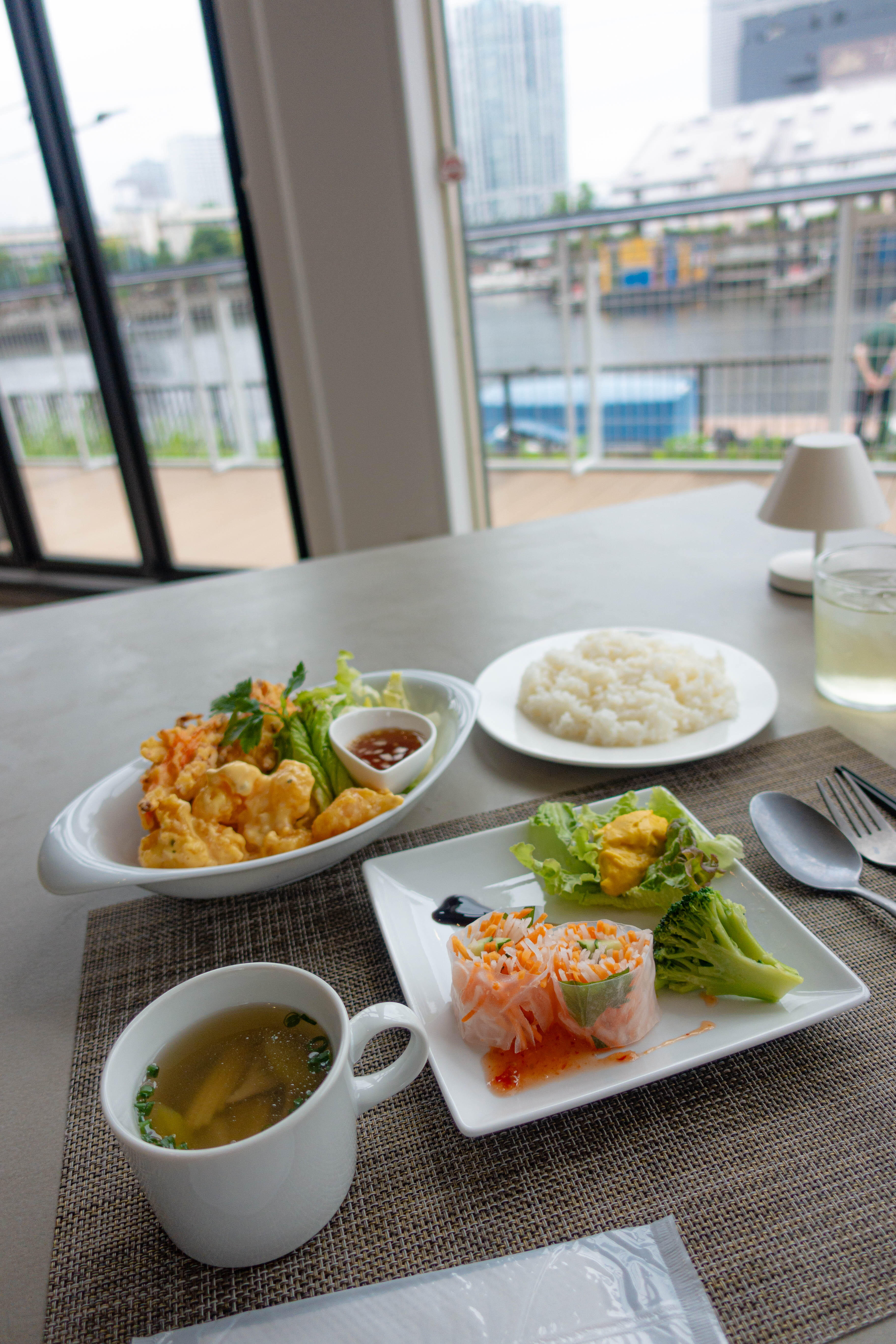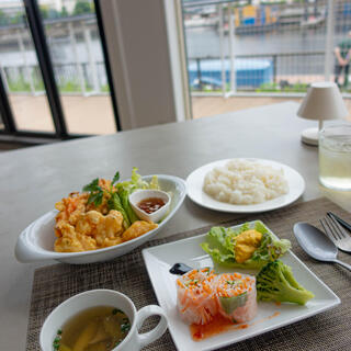 のーんびり水を見ながら食べるご飯、お昼のこういう落ち着いた時間がいいんですよね。