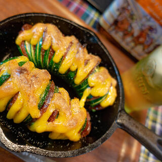 ハッセルバック・ズッキーニ 夏休みの課題、ハッセルバック・ズッキーニ。 提出しました。ミニスキレットを使うこと、2切に1枚にすると食べる時切り離しやすい。チェダーチーズは挟むとあんまり解けないので上にたっぷり。ベーコンよりサラミの方が美味しいかも。 課題のクリアに結構色々工夫はあります(笑)
